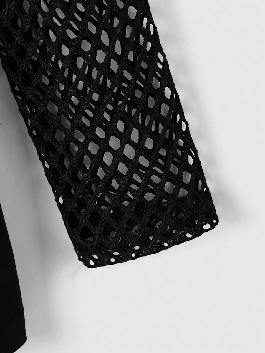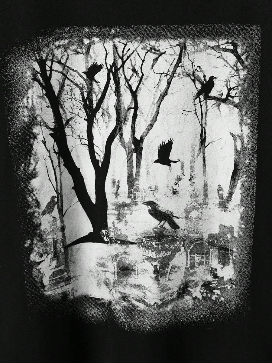 Goth Camiseta de doble capa de manga larga con silueta de bosque gótico negro impresa en malla, para la escuela