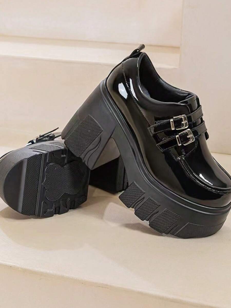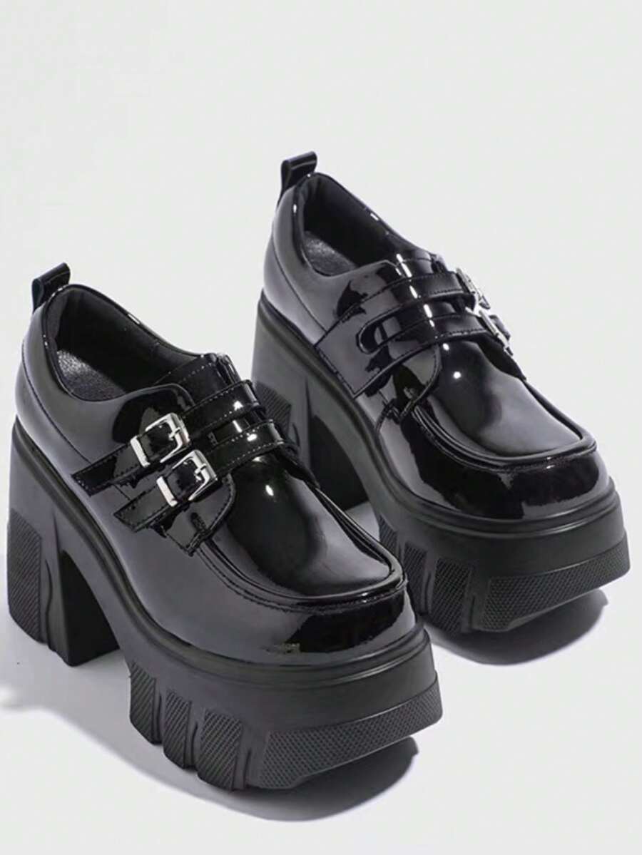 Goth Zapatos de tacón alto de plataforma Mary Jane negros para mujer, nuevos zapatos de tacón grueso de estilo japonés JK de temporada de primavera, retro