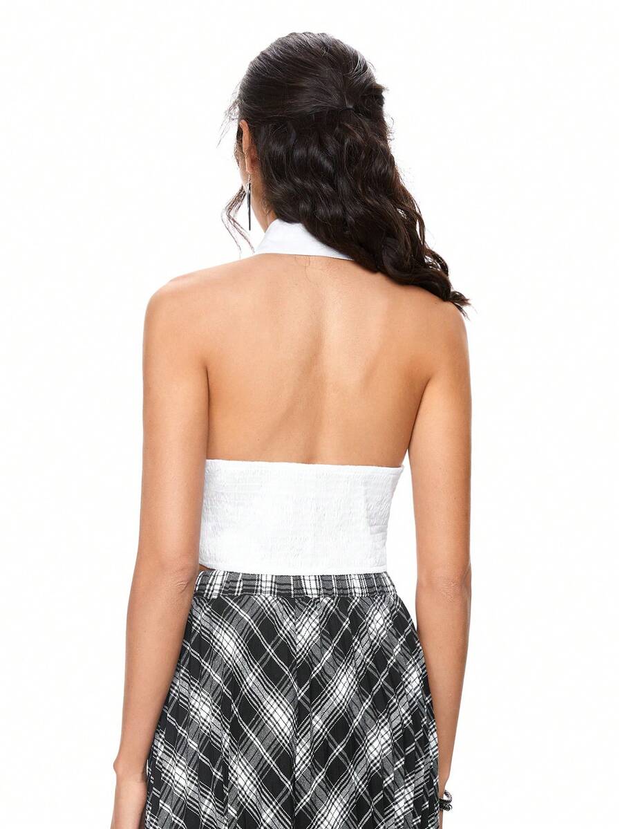 Goth Blusa ceñida con cuello de lazo sin mangas de estilo universitario para mujeres