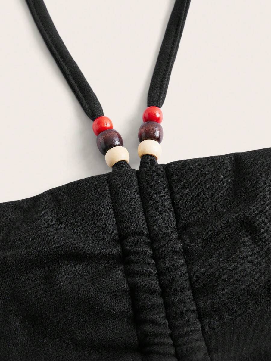 Goth Falda unido en contraste de cintura con cordón bajo asimétrico