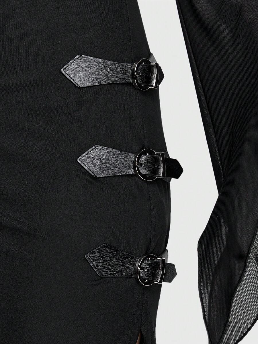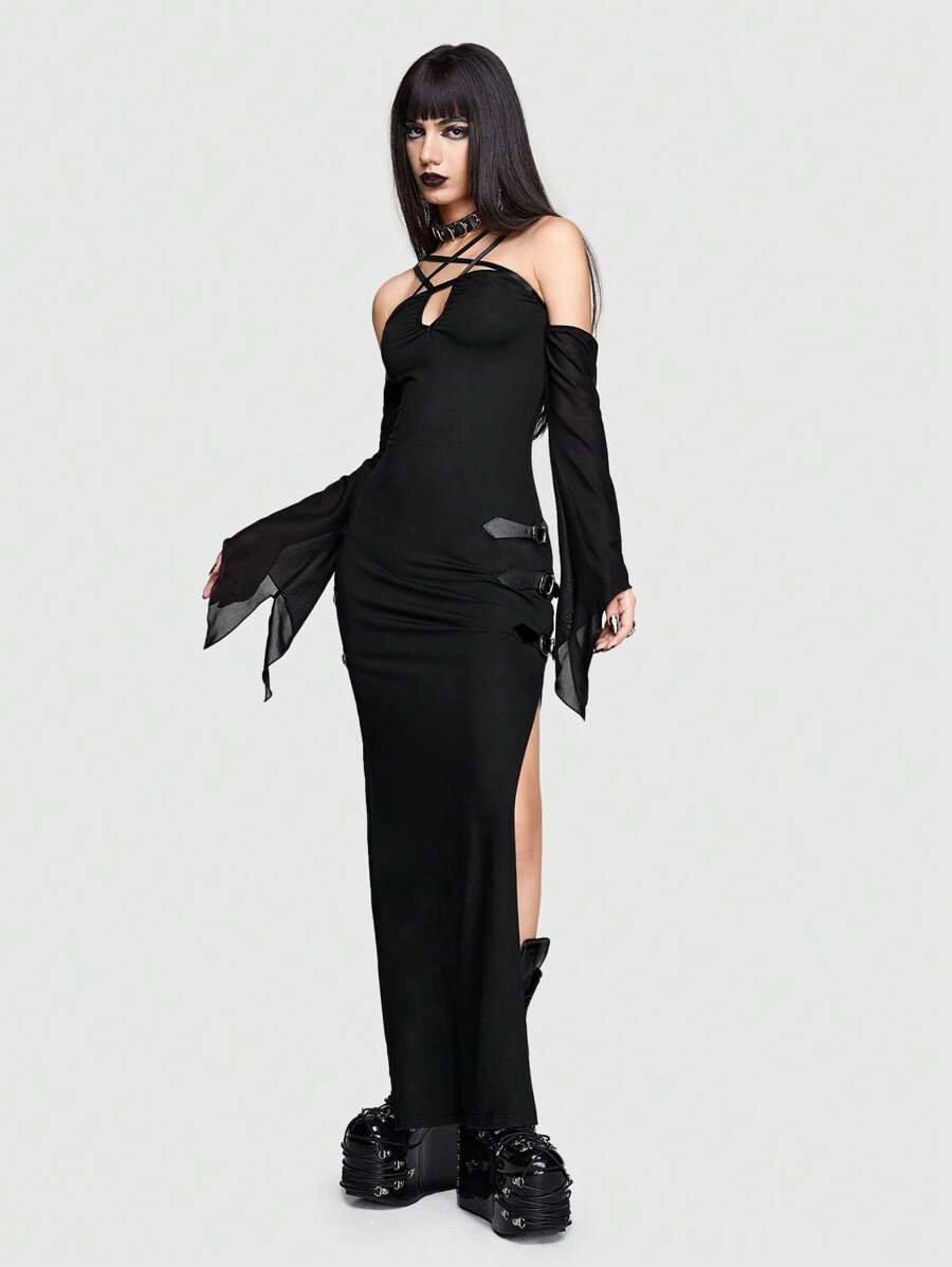 Goth Vestido con tira cruzada delantera de muslo con abertura de cuello halter de manga amplia
