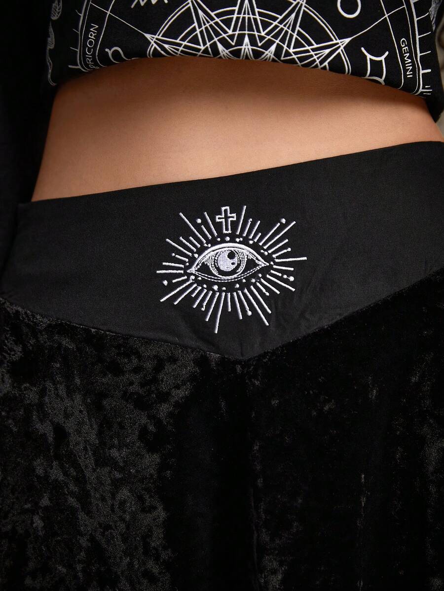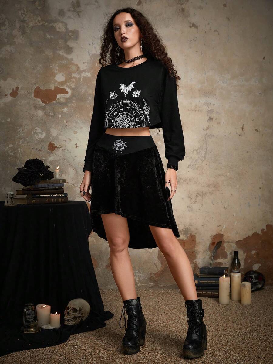 Goth Falda ojo con estampado bajo irregular de terciopelo
