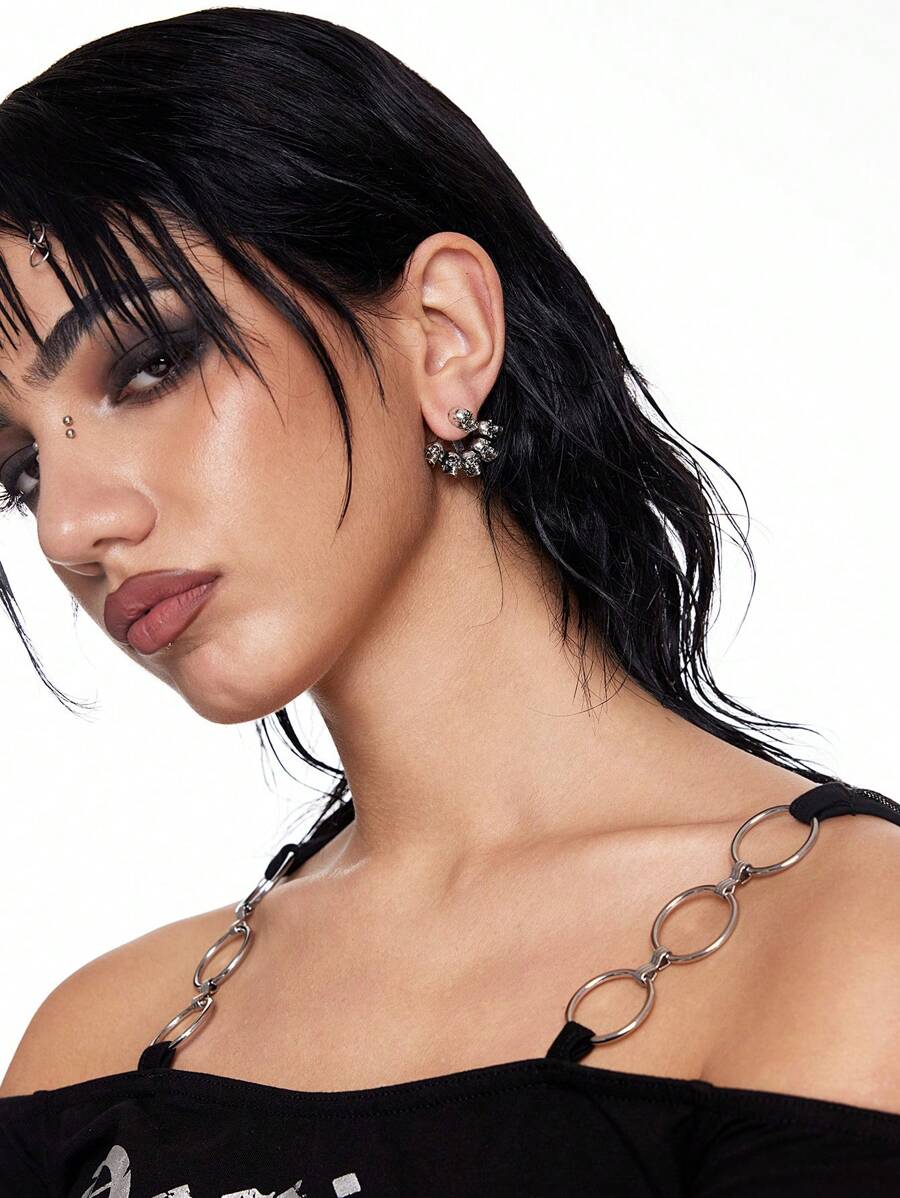 Goth Pendientes de sección doble con diseño exagerado de estilo punk de cabeza de esqueleto