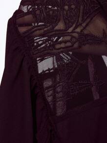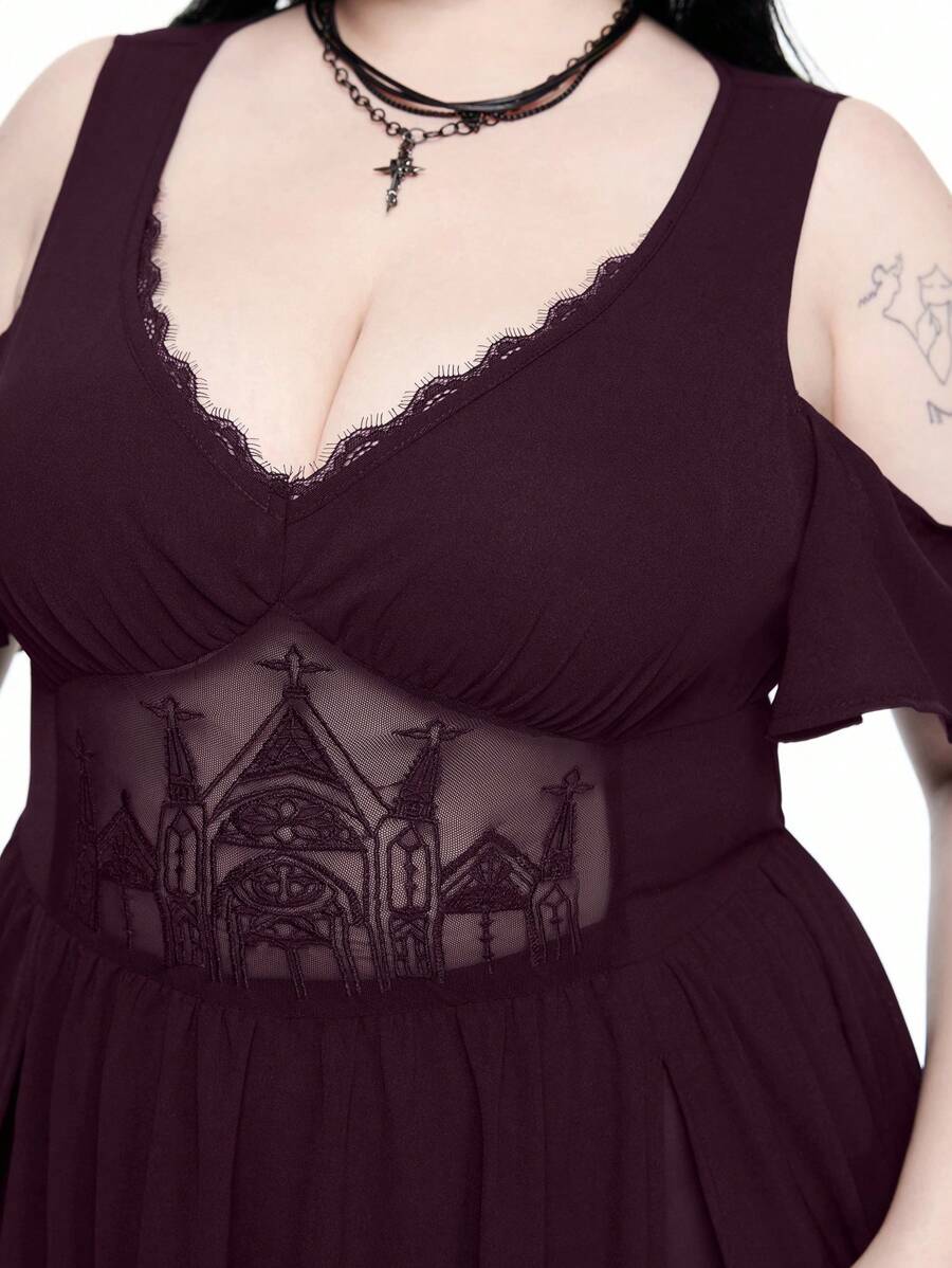 Goth Vestido de talla grande con escote profundo en V, hombros descubiertos, abertura alta y patrón calado bordado estilo gótico
