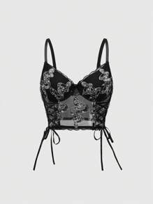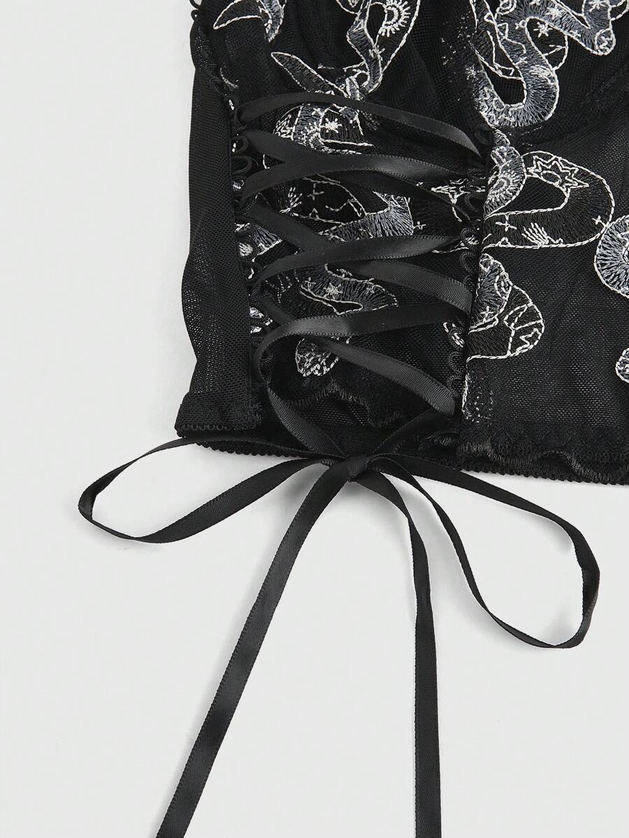 Goth Bralette gótico con bordado de serpiente, cordones y arco interior