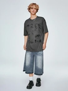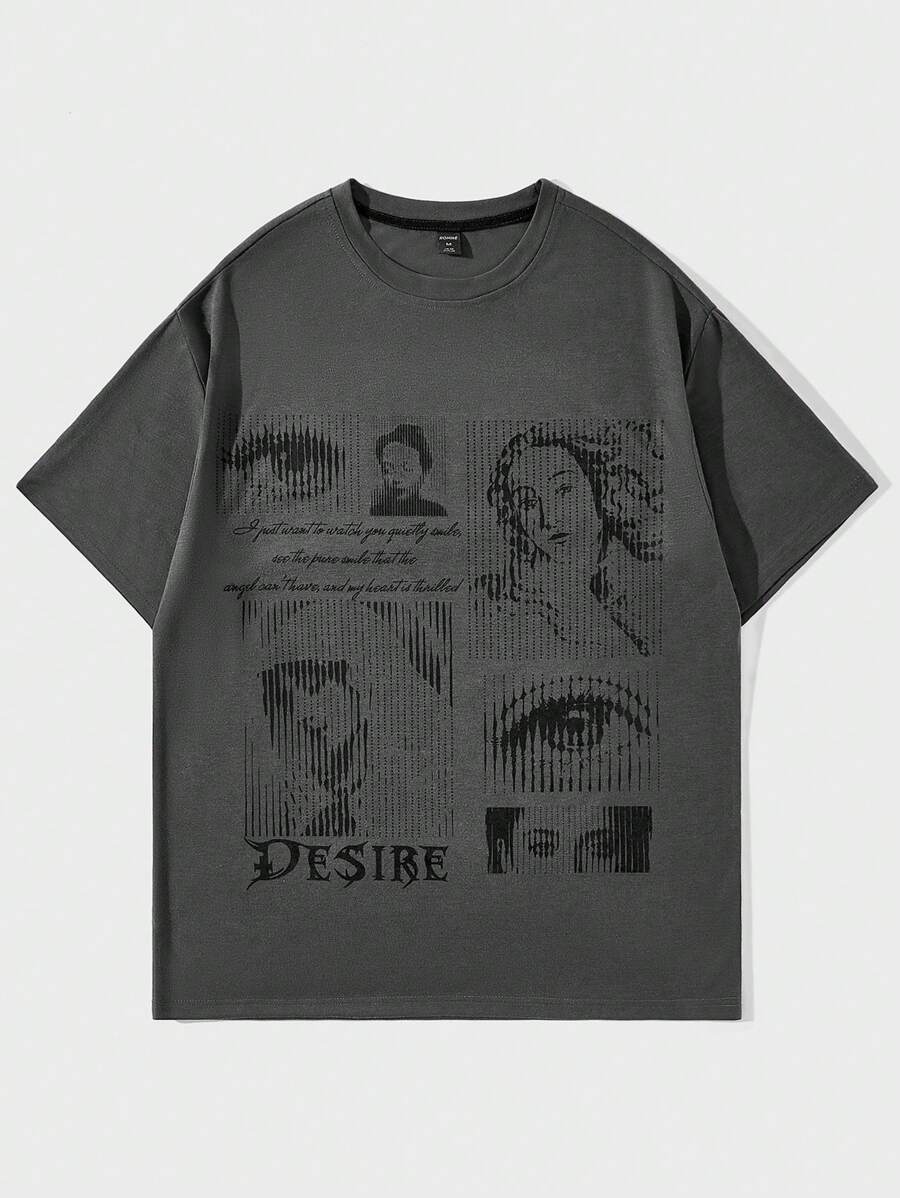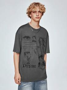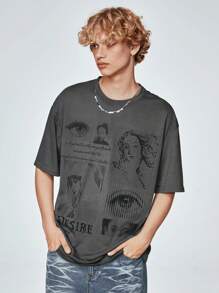 Goth Camiseta Gráfica Masculina Con Figura Y Letras En Hombros Caídos