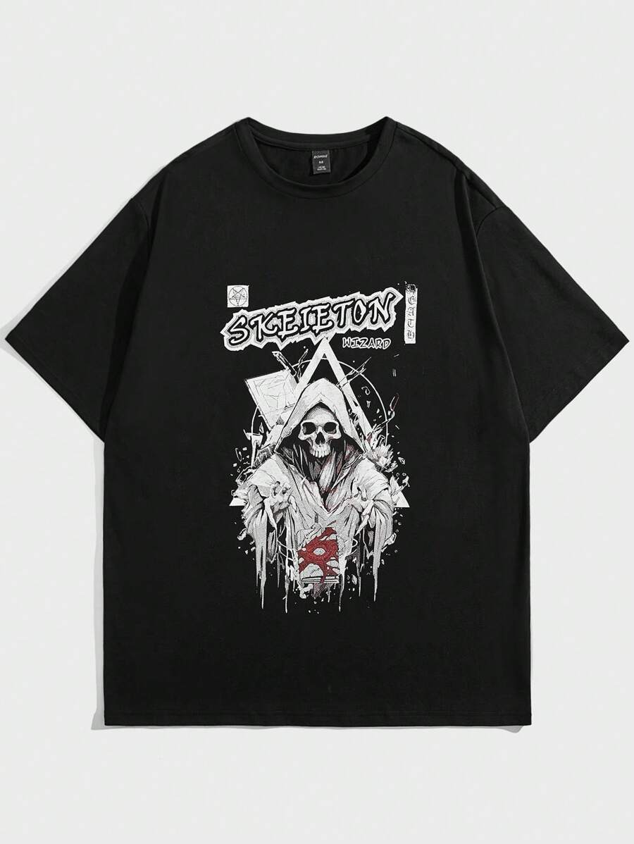 Goth Hombres Camiseta con estampado de letra y esqueleto