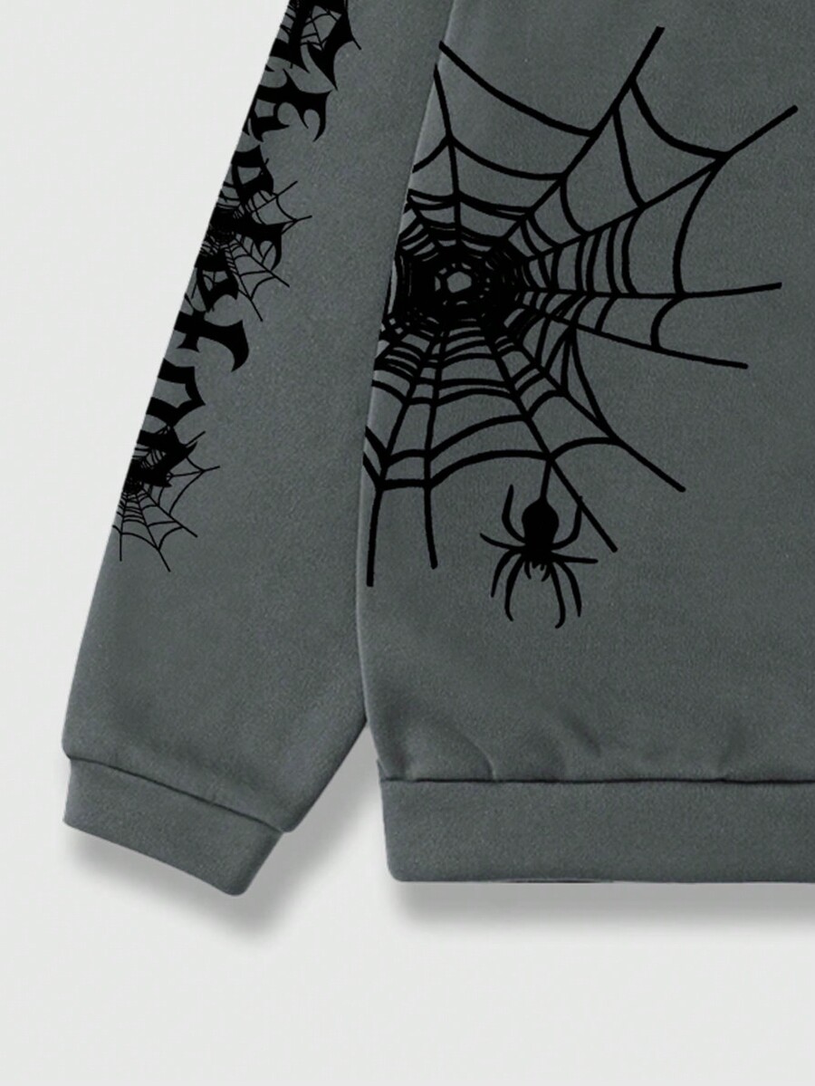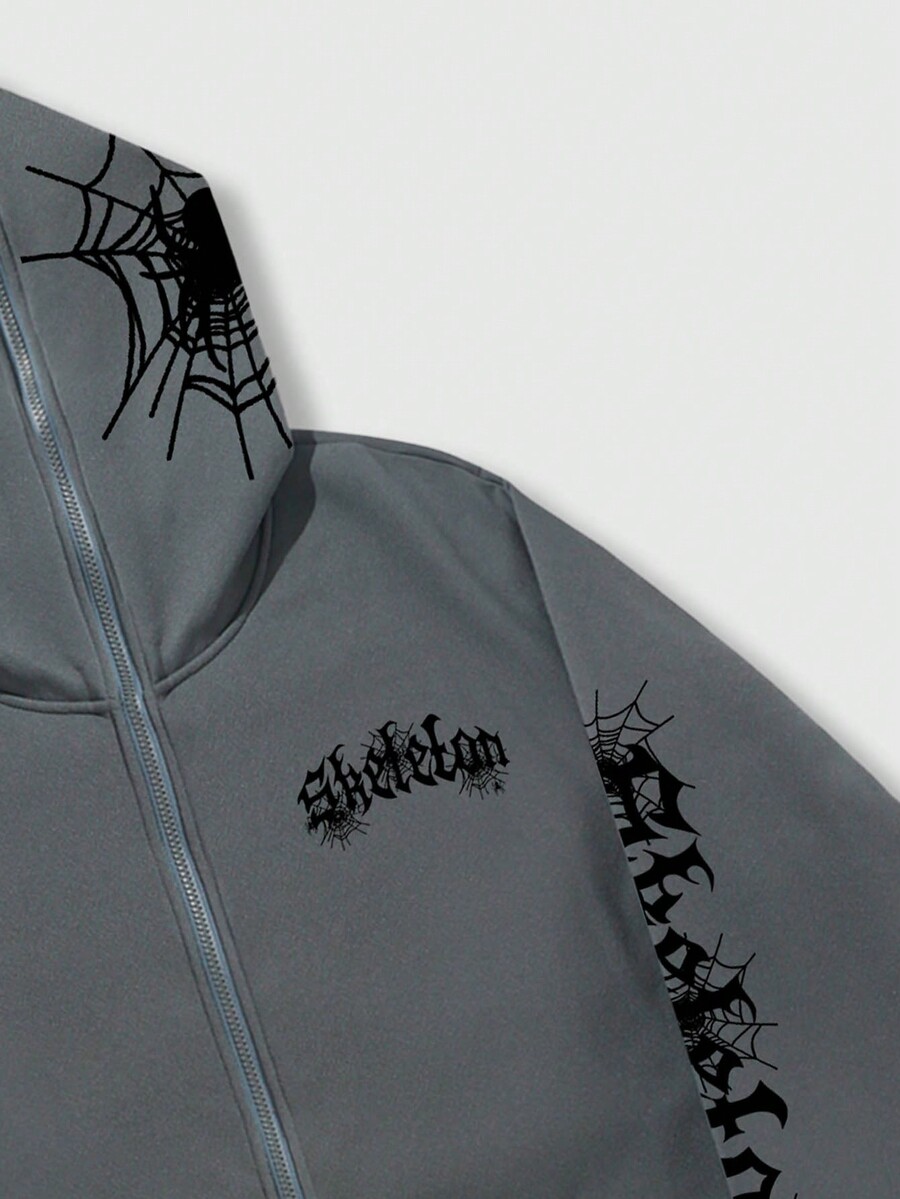 Goth Sudadera Con Capucha Térmica Forrada Con Letra Y Gráfico De Tela De Araña Con Cremallera Para Hombres