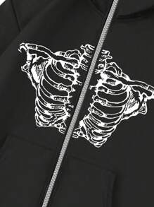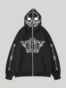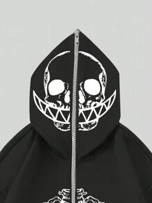 Goth Hombres Capucha con cremallera estampado de esqueleto