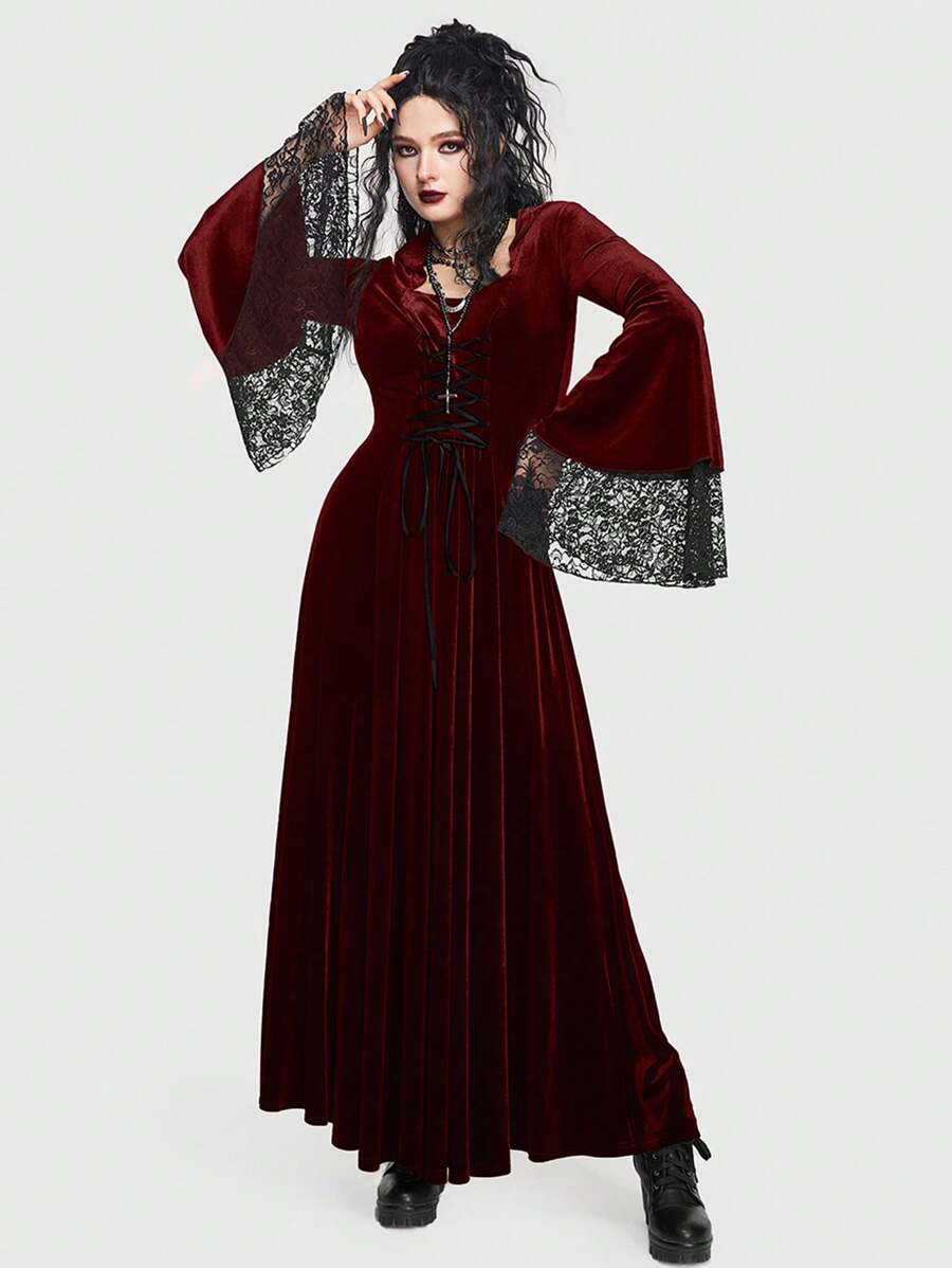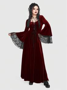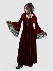Goth Vestido con cordón delantero de manga campana de terciopelo
