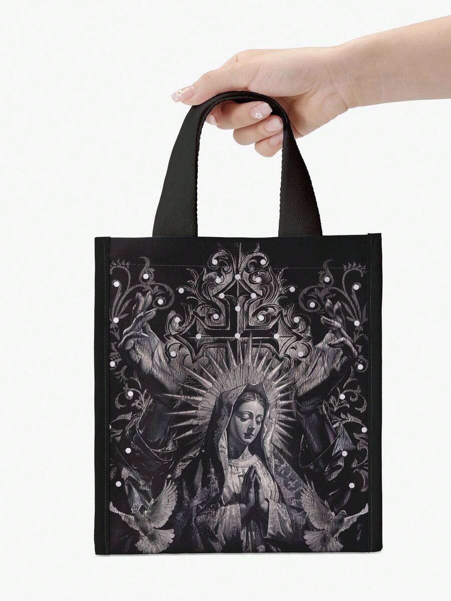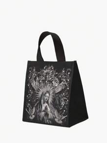 Goth Bolsa de almuerzo aislada con estampado de Madonna, de moda para la vuelta al cole en primavera/verano, bolsa funcional, bolsa de almuerzo, bolsa refrigeradora