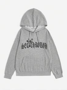 Goth Hombres Capucha con letra & cruzado con estampado