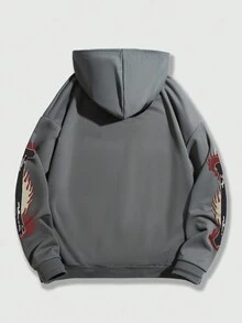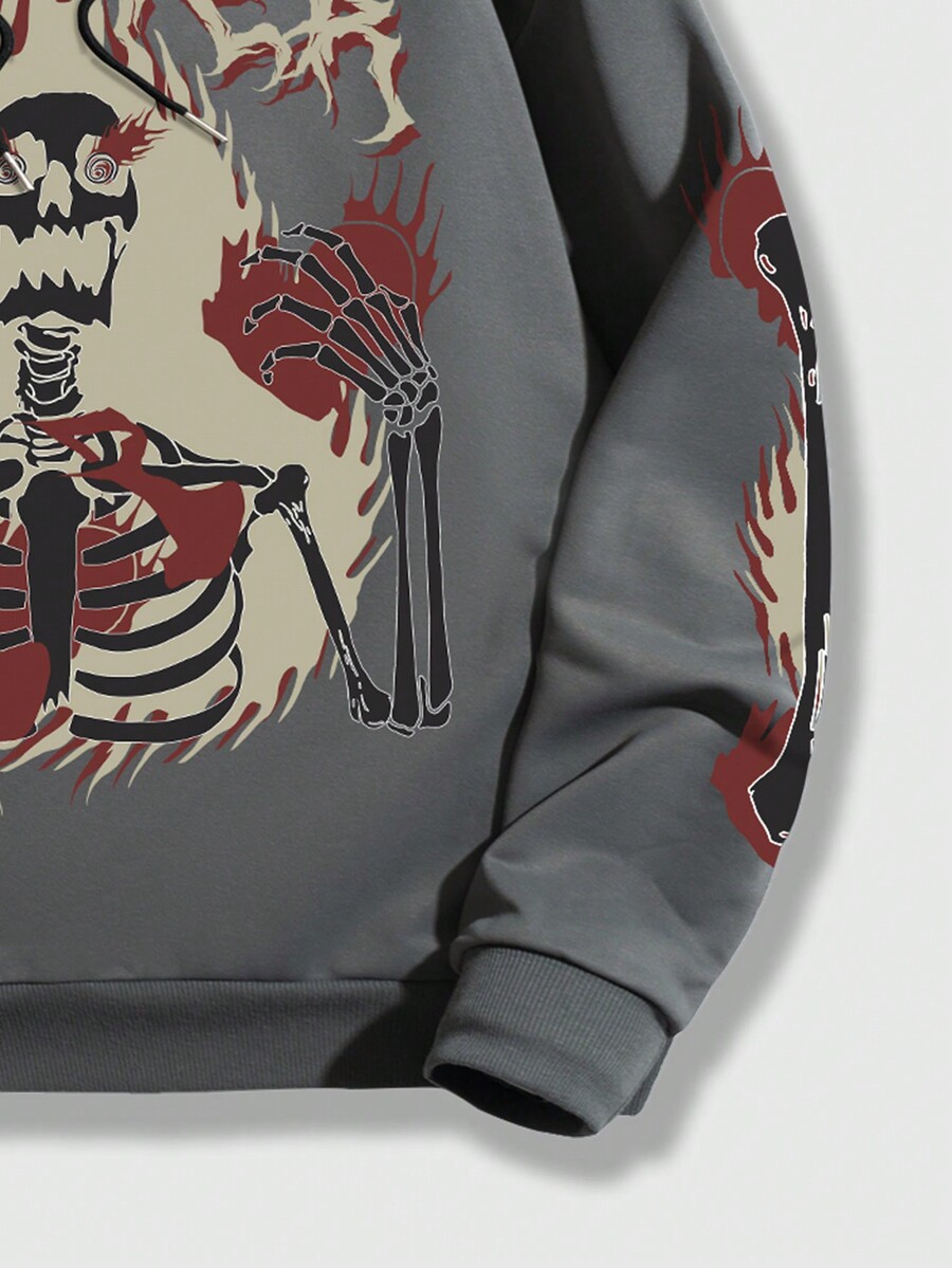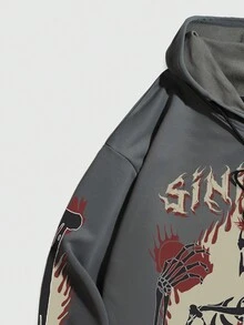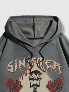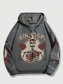 Goth Hombres Esqueleto Y Letra Impresa Sudadera Con Capucha Con Cordón