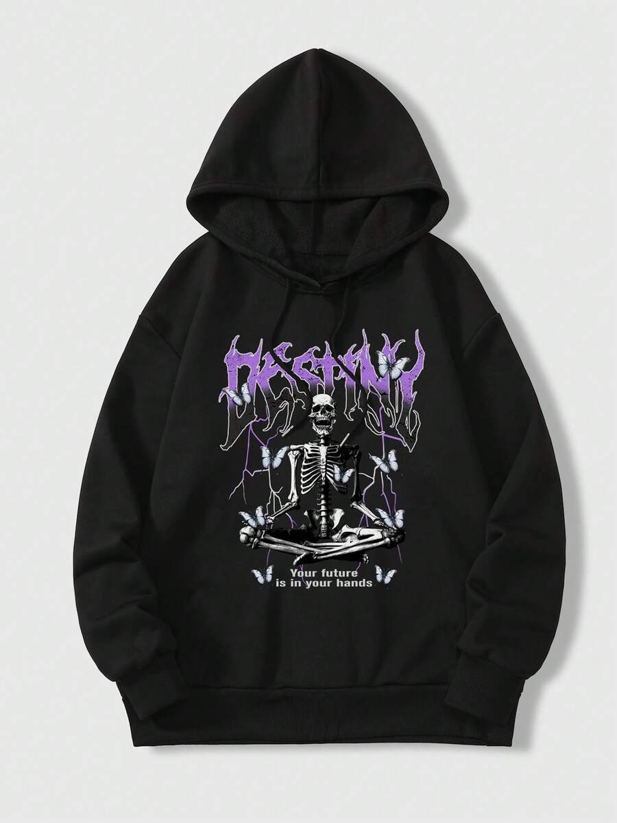 Goth Hoodie Sudadera Con Estampado De Cráneo Para Hombre