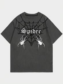 Goth Camiseta Para Hombre Con Estampado De Araña Y Letras
