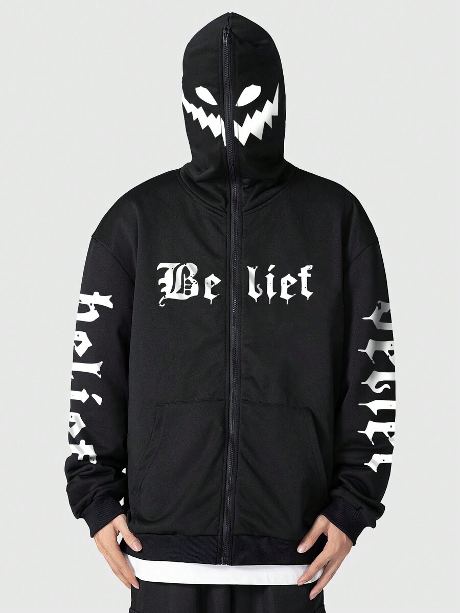 Goth Sudadera Deportiva Con Capucha Y Cremallera Para Hombre Con Estampado De Letra Y Caricatura