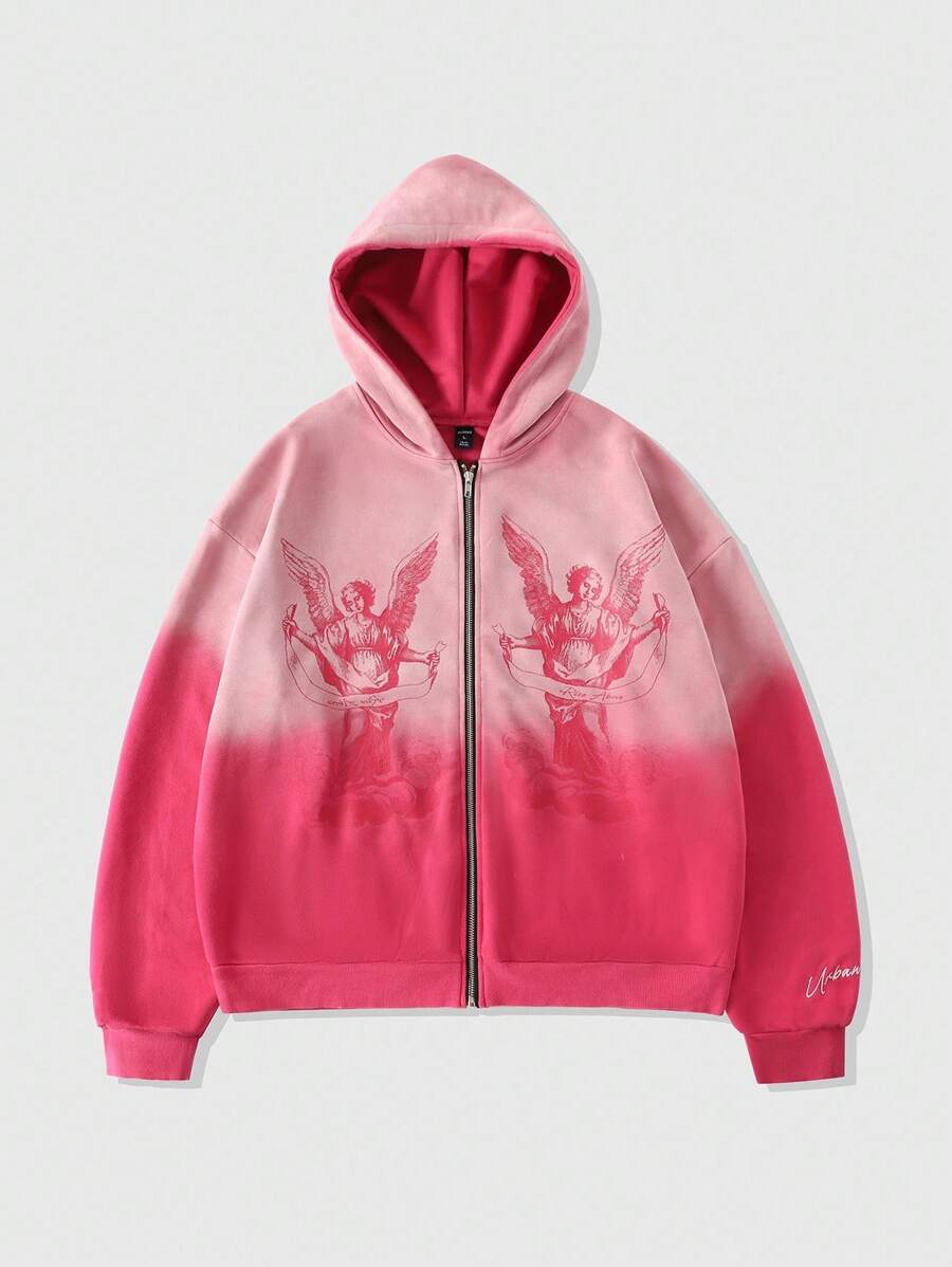 Goth Sudadera de hombre con estampado lavado y cuello abierto, estilo corto y holgado