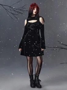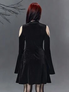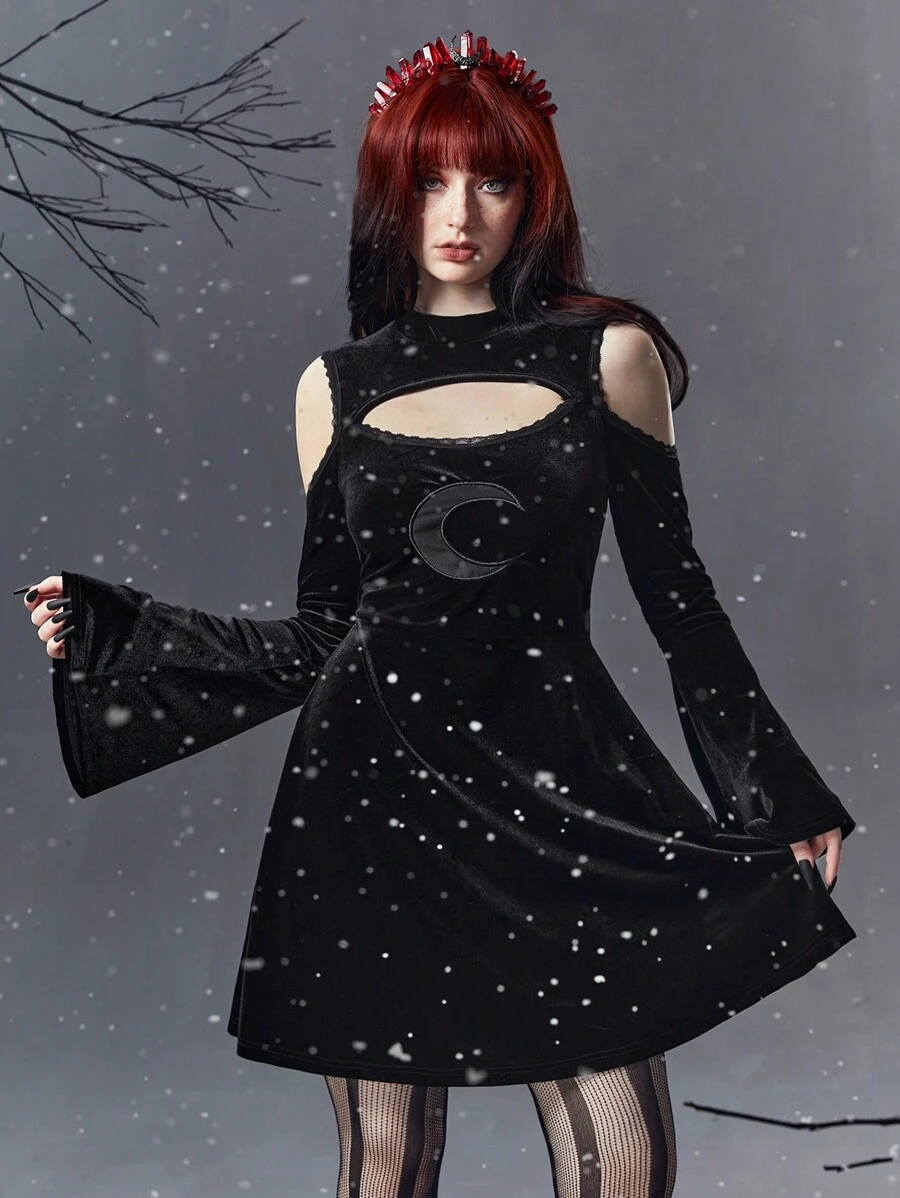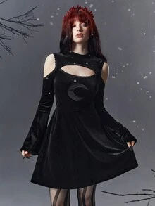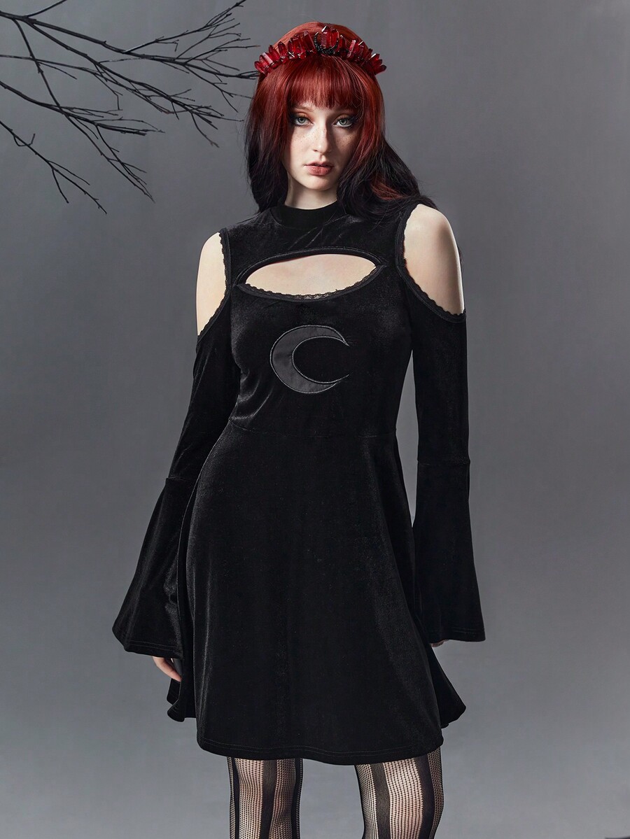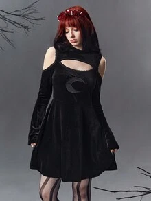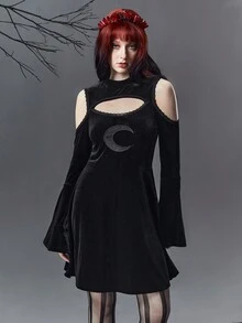 Goth Vestido con estampado de luna con abertura de manga con volante