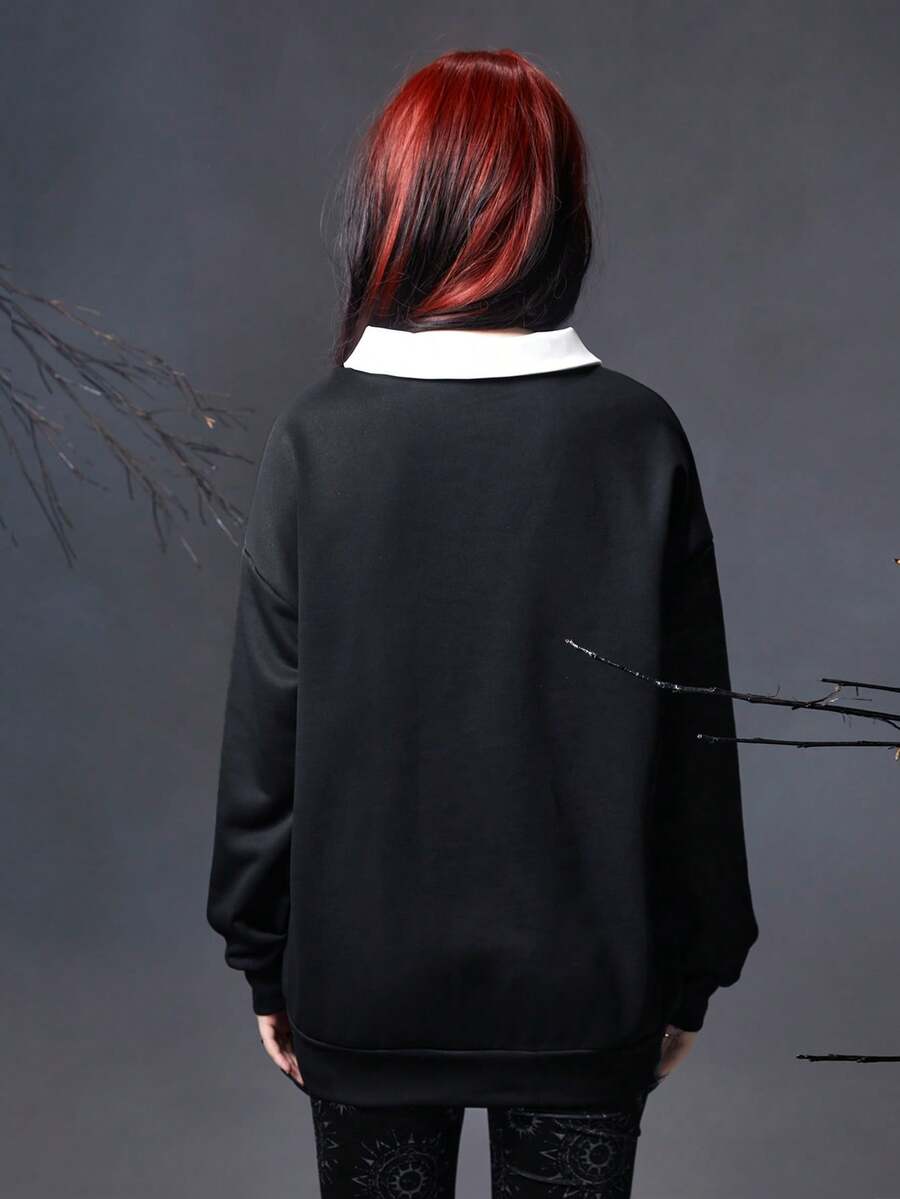 Goth Sudadera Con Estampado De Setas Y Cuello Con Contraste