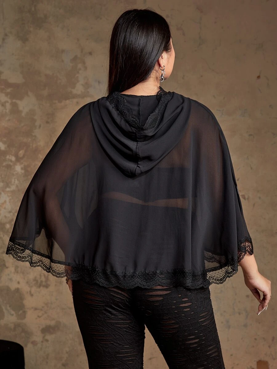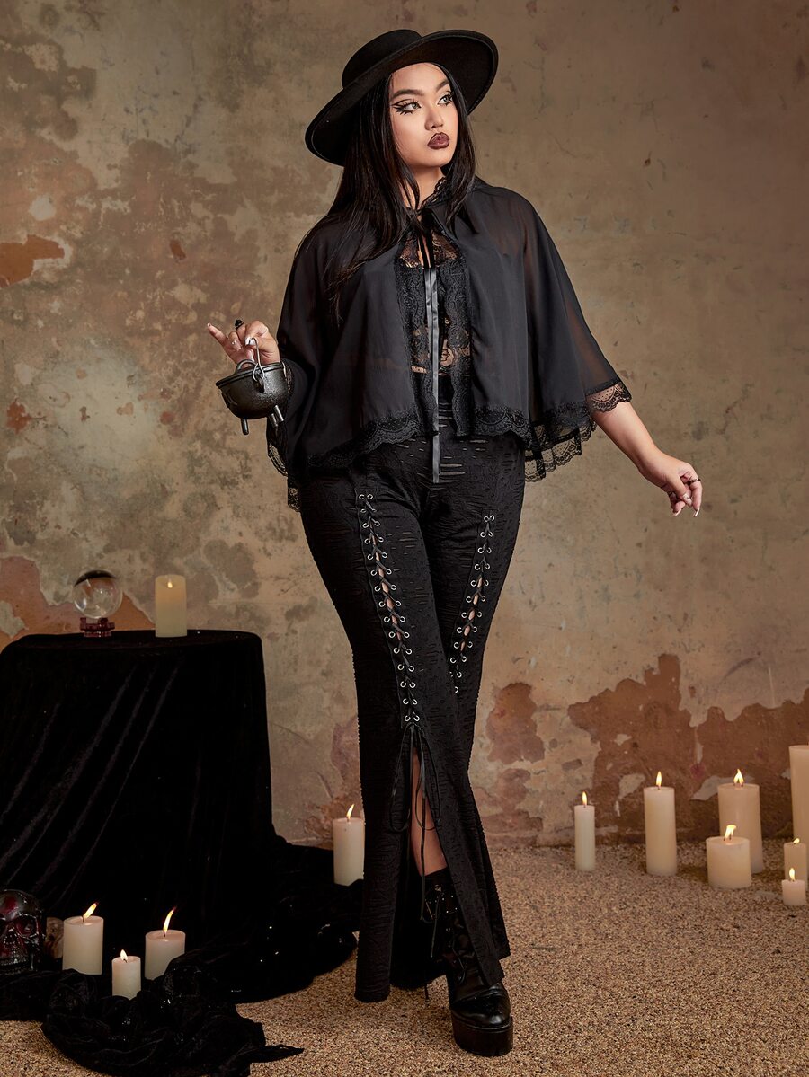 Goth Chaqueta de talla grande Encaje en contraste Lazo delantero Liso Elegante