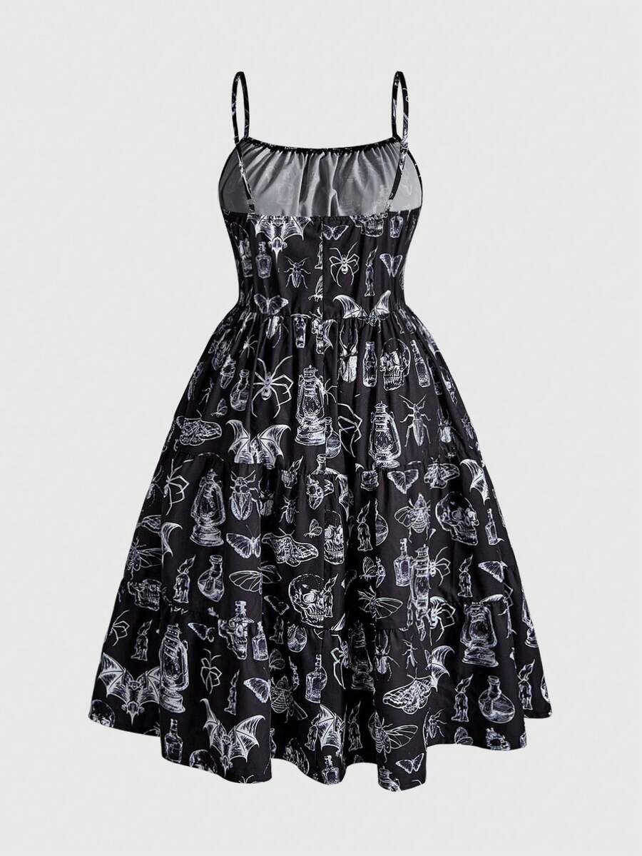 Goth Vestido de tirantes largo con estampado de calavera vintage de talla grande para mujeres