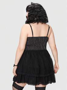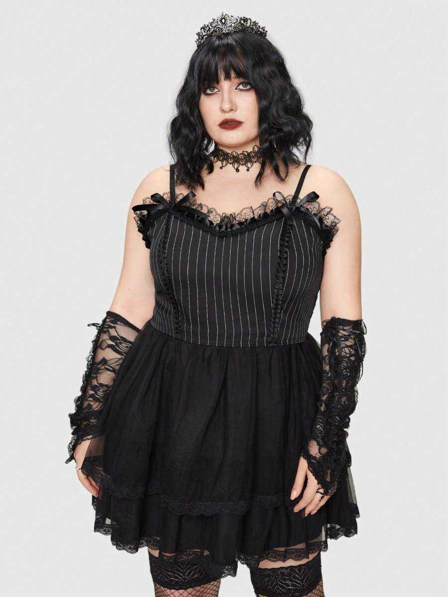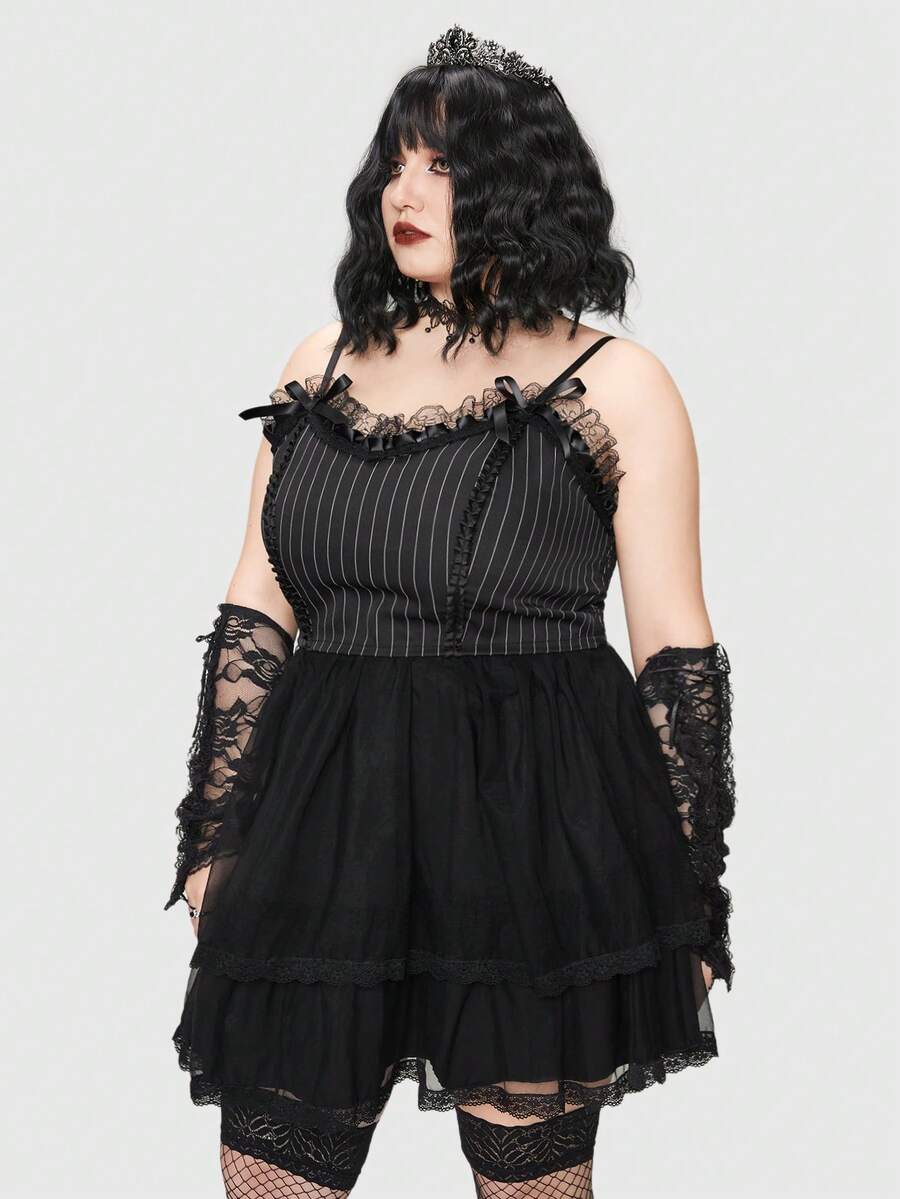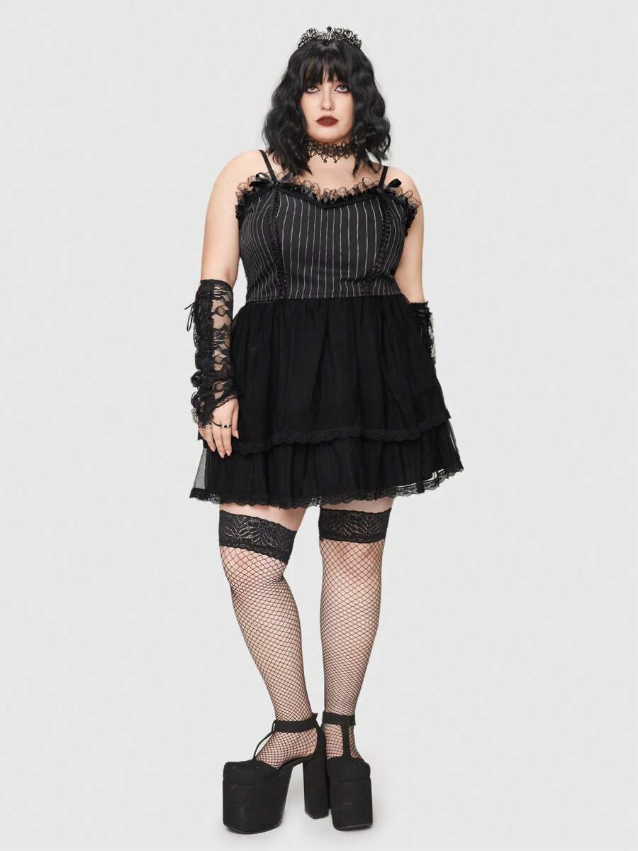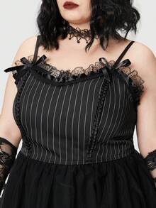 Goth Talla grande Top de tirantes de rayas de malla en contraste