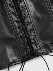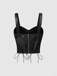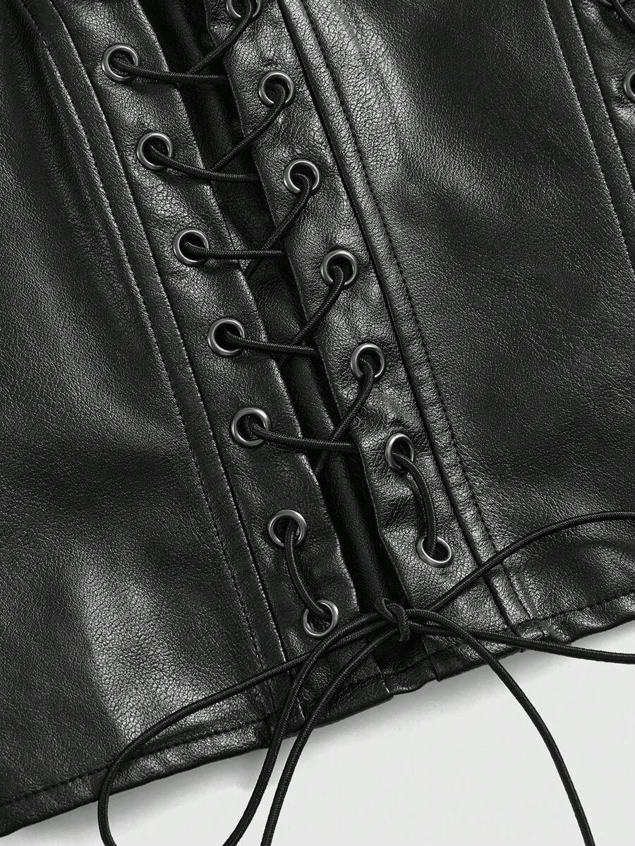 Goth Camiseta sin mangas con decoración de ojales de estilo gótico punk para mujeres en piel sintética (PU)