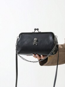 Goth Bolso De Mano Con Cadena Estilo Punk Con Cierre De Cráneo Gótico, Correa Para El Hombro O Cruzada