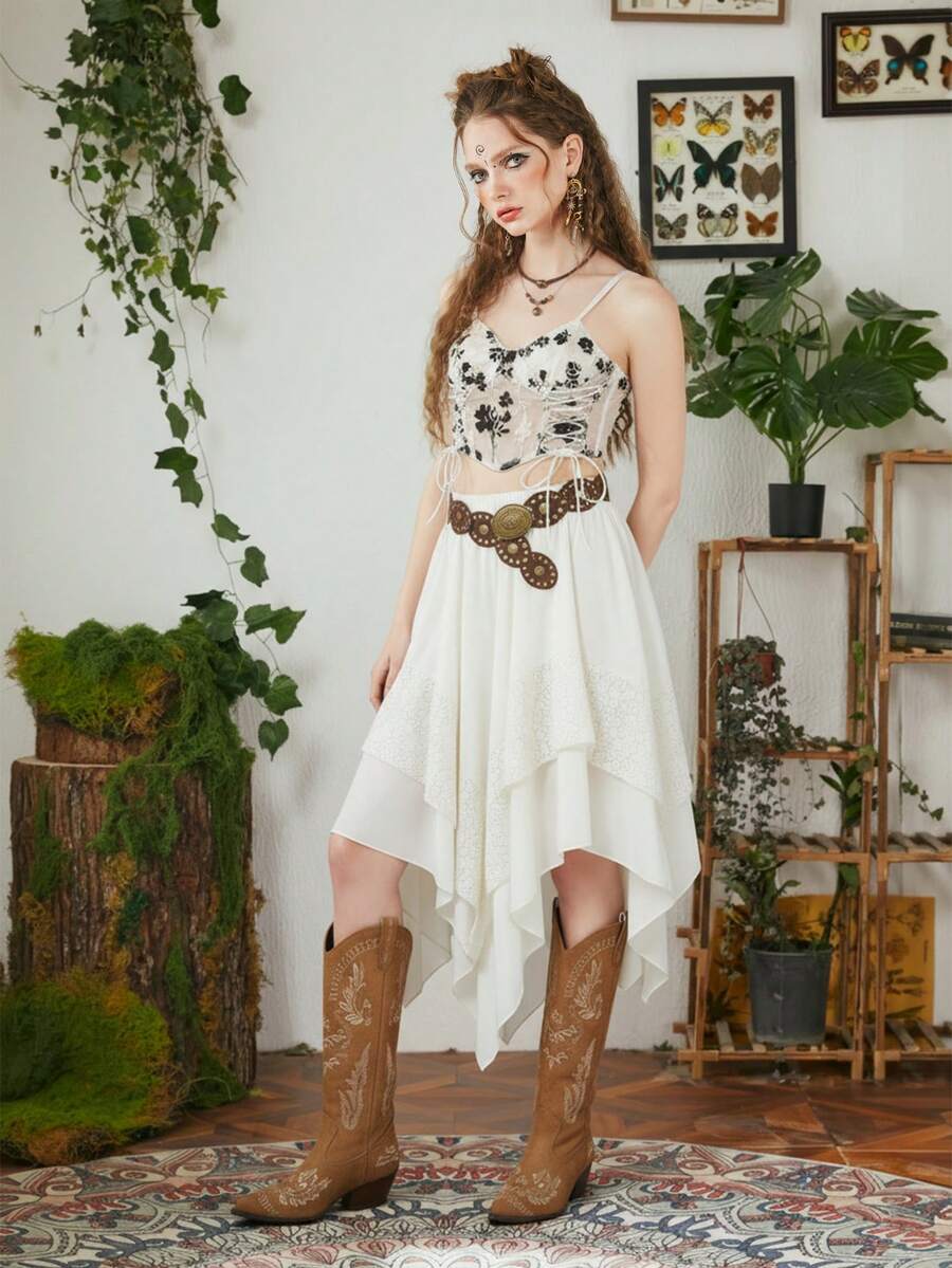 Goth Falda con dobladillo de pañuelo de encaje de contraste estilo Renacimiento