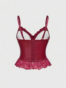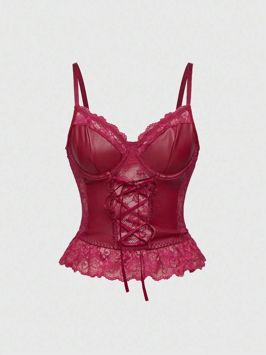 Goth Camiseta sin tirantes gótica con encaje y contraste de PU