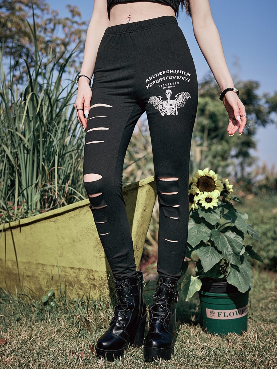 Goth Leggings con estampado de esqueleto desgarro escalonado