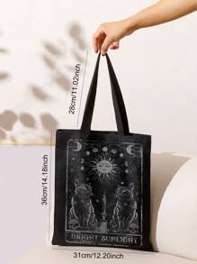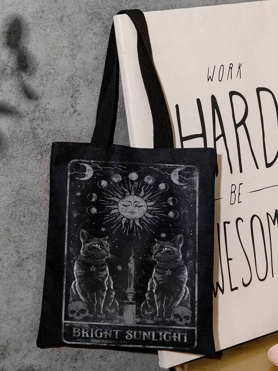 Goth Bolsa de compras pequeño casual gato & con estampado de sol para compras