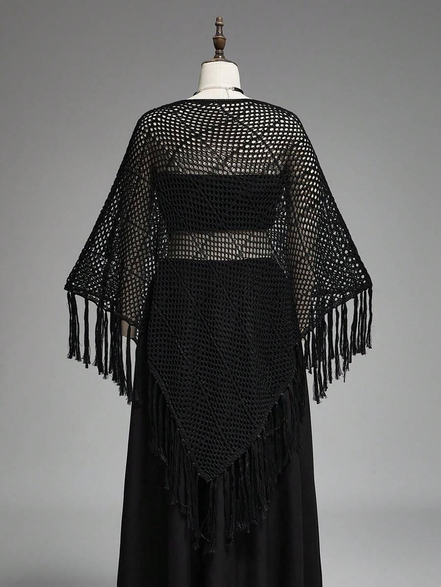 Goth Poncho de suéter transparente con diseño asimétrico de flecos estilo boho occidental