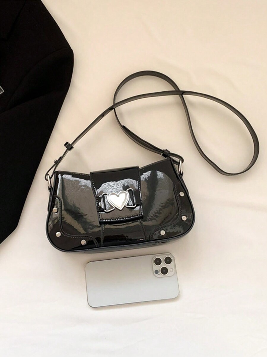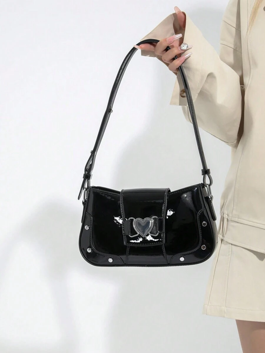 Goth Bolso de hombro de estilo punk patentado con tachas para mujer