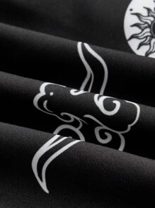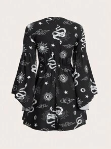 Goth Vestido con estampado de sol y luna con cordón delantero con abertura