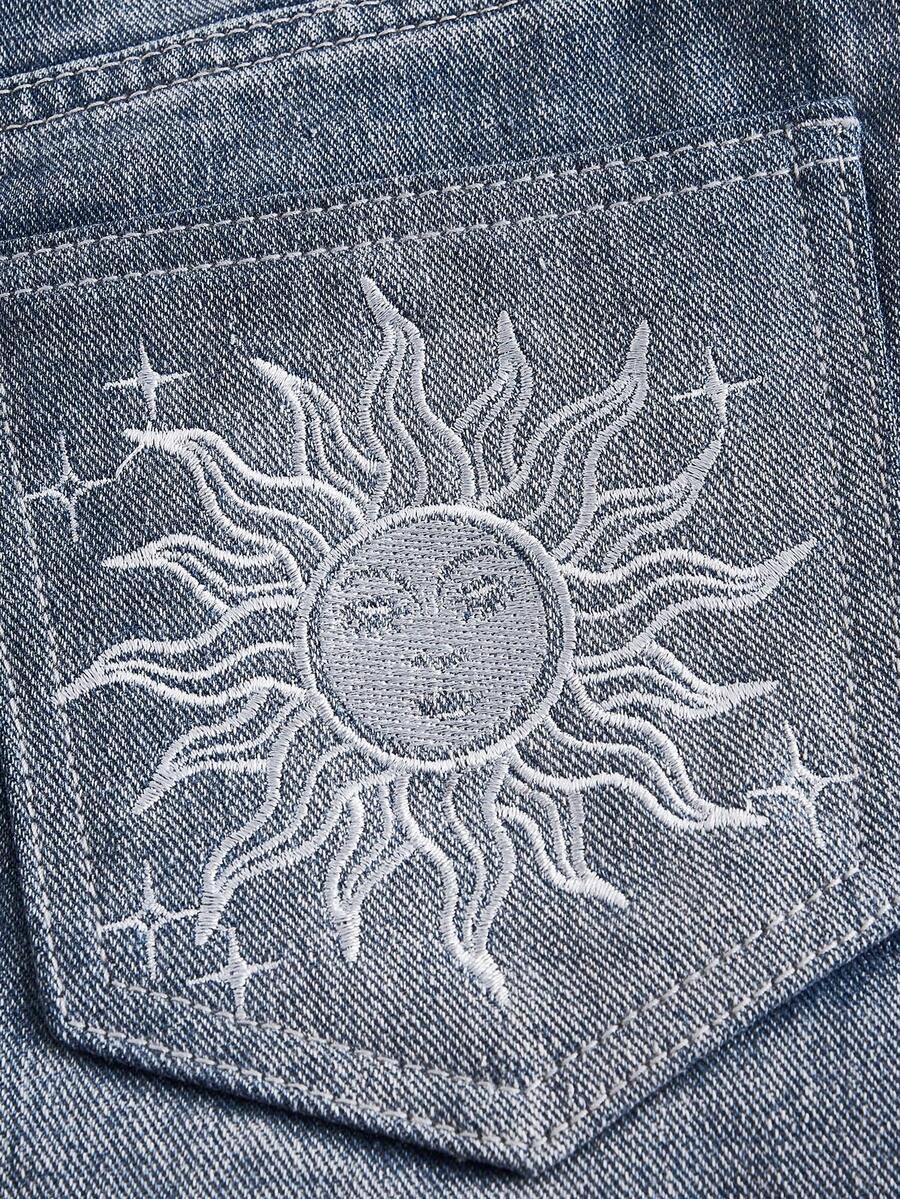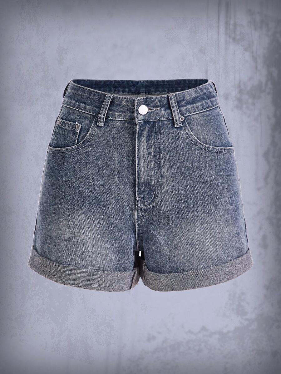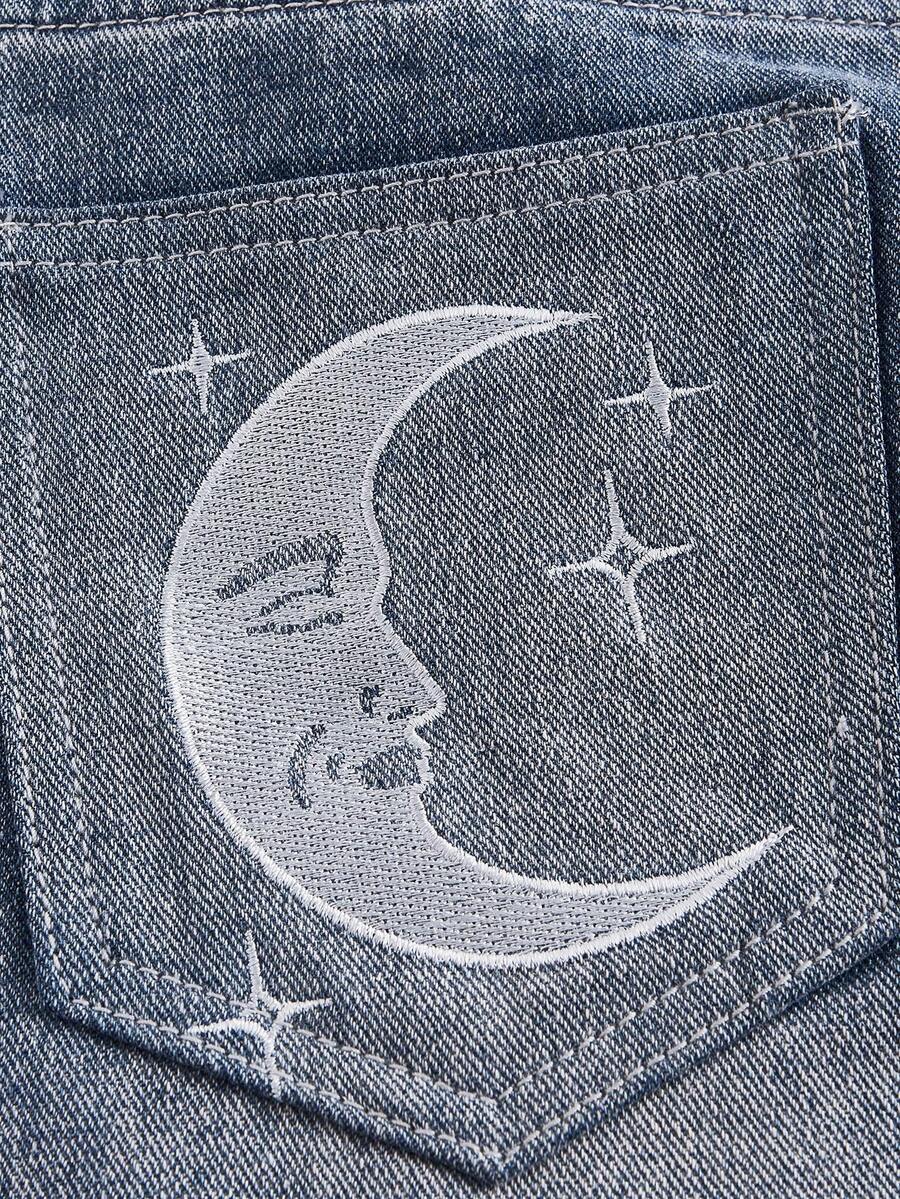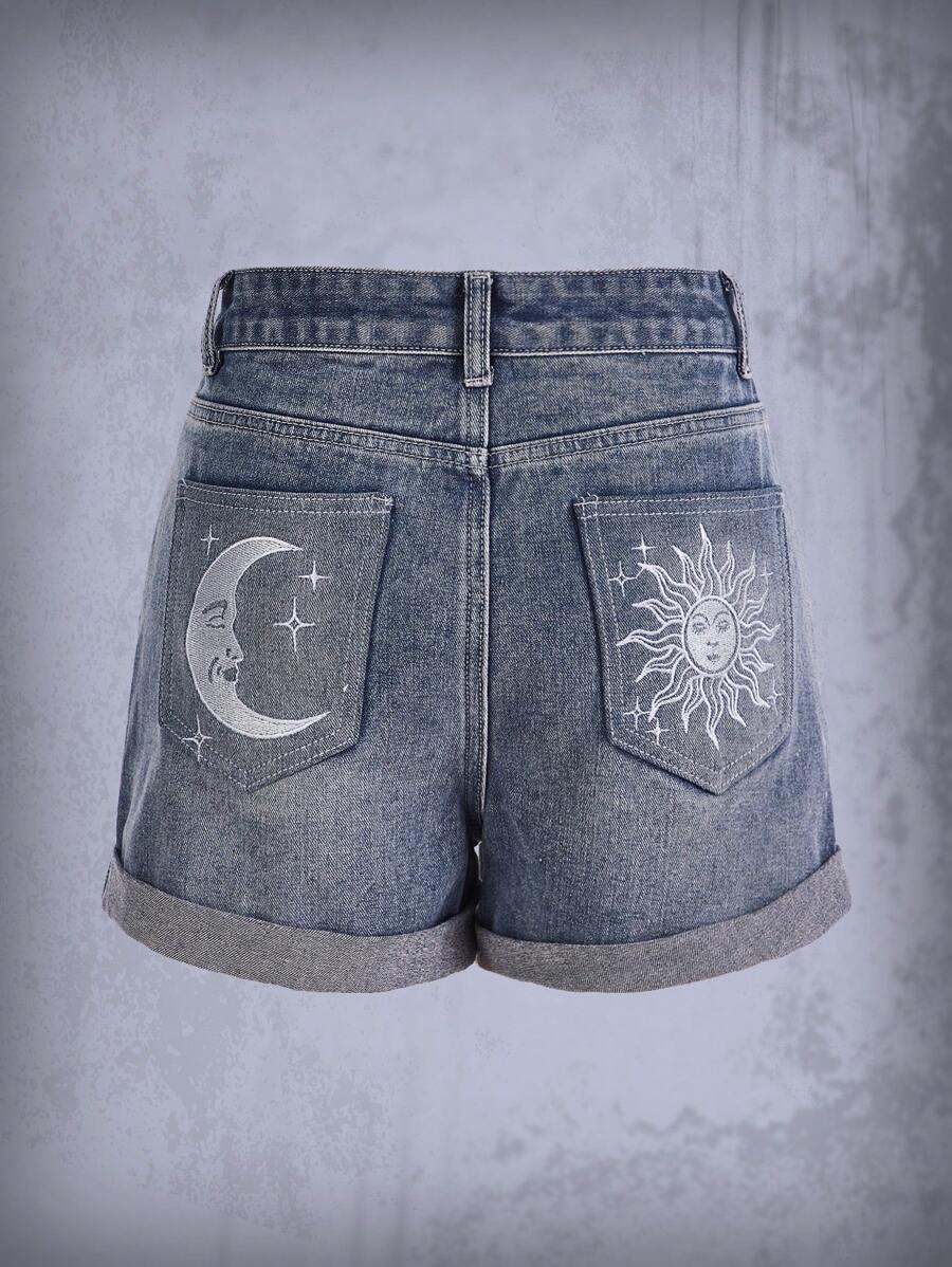 Goth Shorts en mezclilla sol & luna bajo de doblez