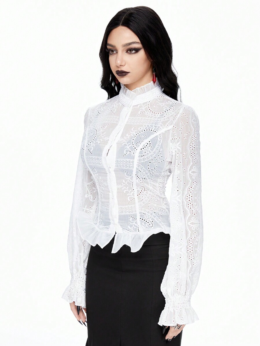 Goth Camisa de manga larga ajustada con estampado floral jacquard de estilo gótico romántico vintage