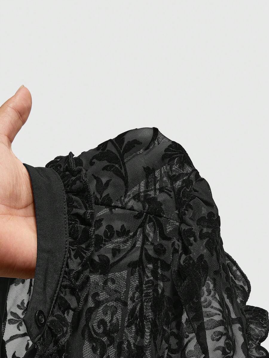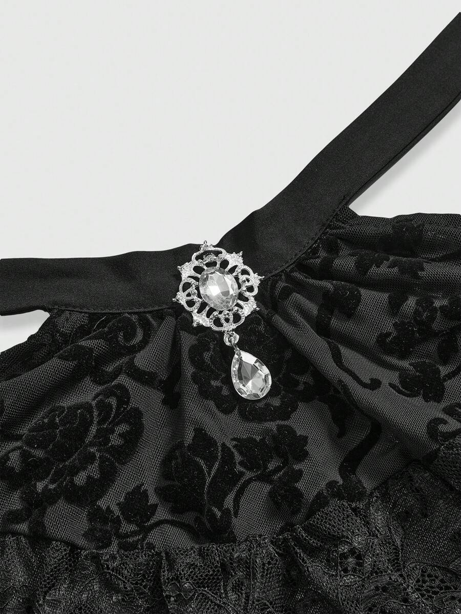 Goth Blusa de mujer con cuello de volantes desmontable con estilo vintage, palacio gótico y floca, pendiente barroco con diamante, mangas de volantes, cintura con lazo