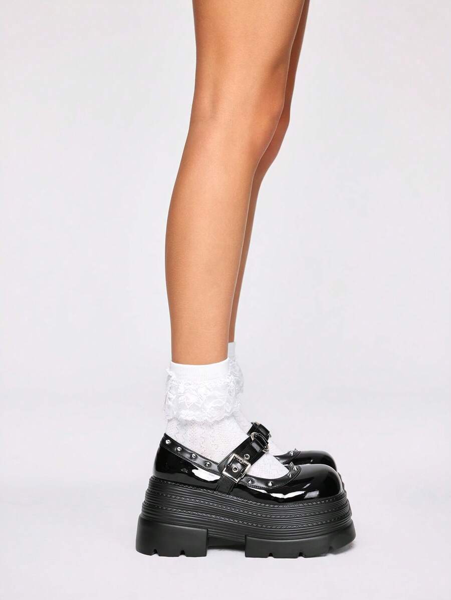 Goth Mocasines planos con plataforma gruesa, correa cruzada y hebilla en estilo punk para mujer