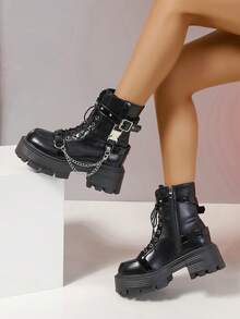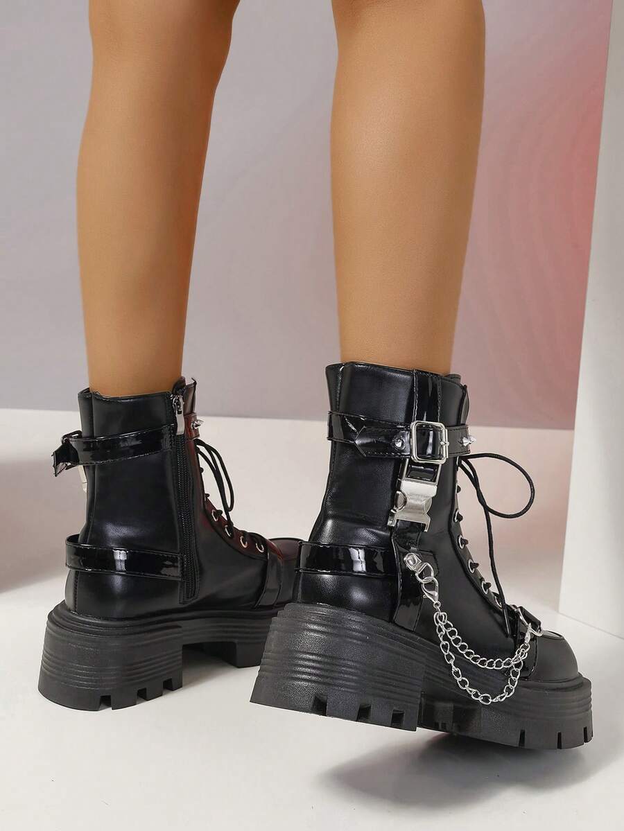 Goth Botines De Tobillo Para Mujer Con Cadena Decorativa De Moda