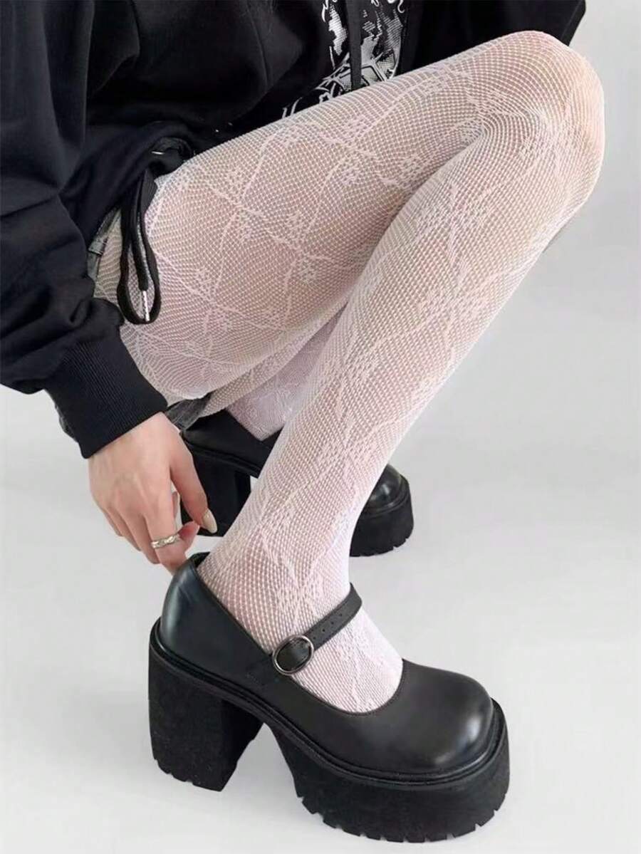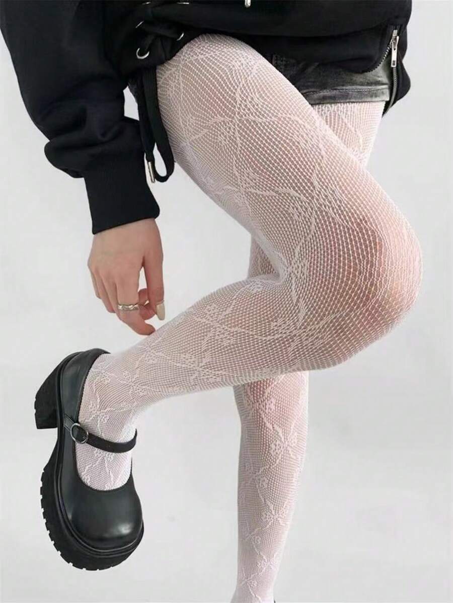 Goth Medias de mujer con estampado de cuadros argyle y lazo blanco, de moda y adorables para el verano