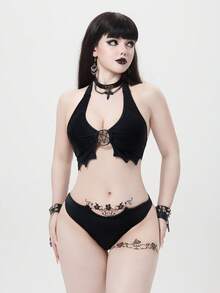 Goth Conjunto de traje de baño gótico negro oscuro para mujer, bikini con estrella de cinco puntas y murciélago