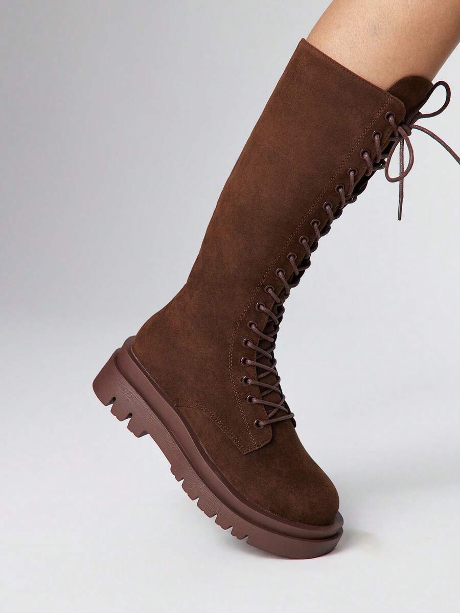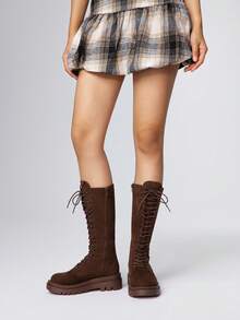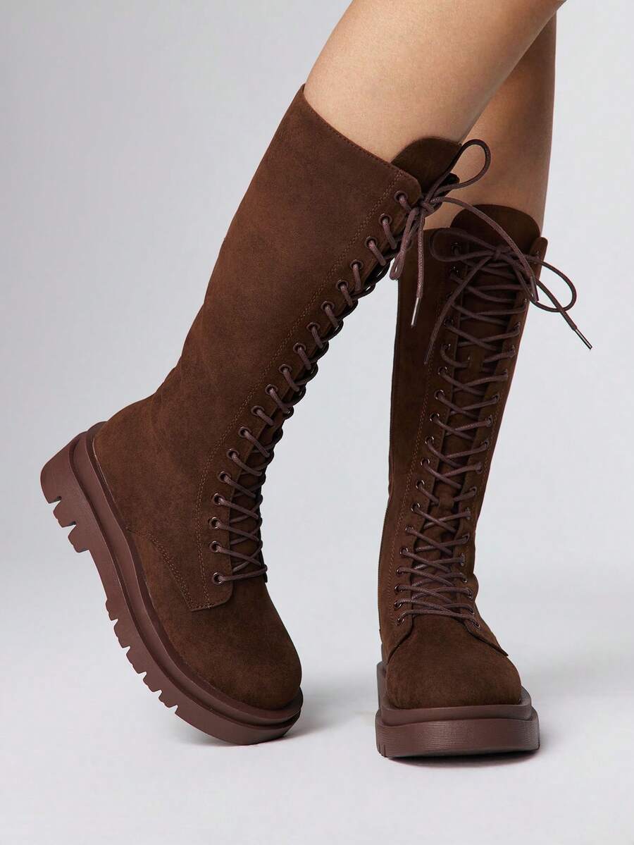 Goth Botas altas para mujer con cordones, de tacón grueso y suela gruesa