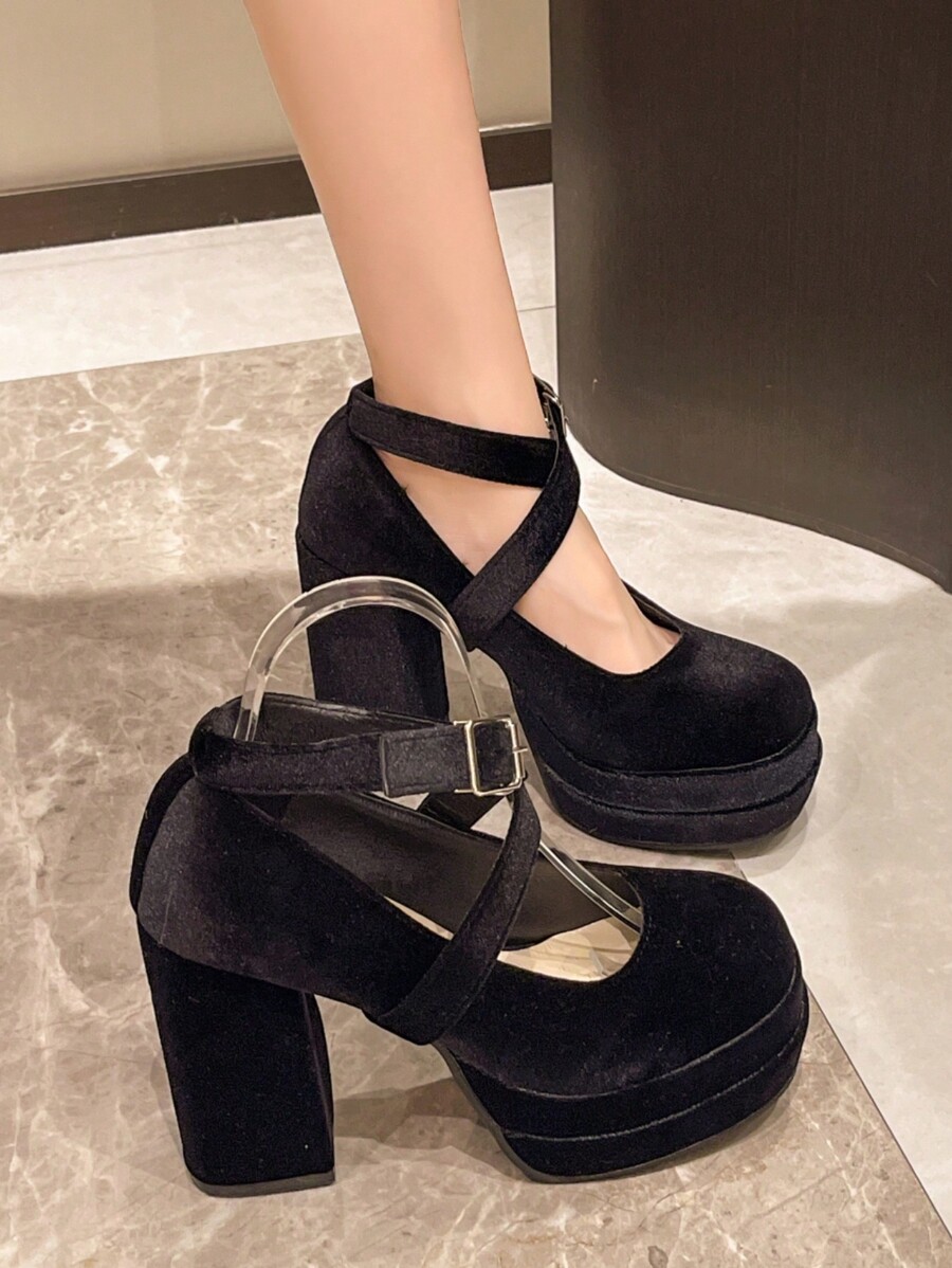 Goth Zapatos de verano nuevos de 2024 para mujer con tacón grueso y corte bajo en estilo Mary Jane