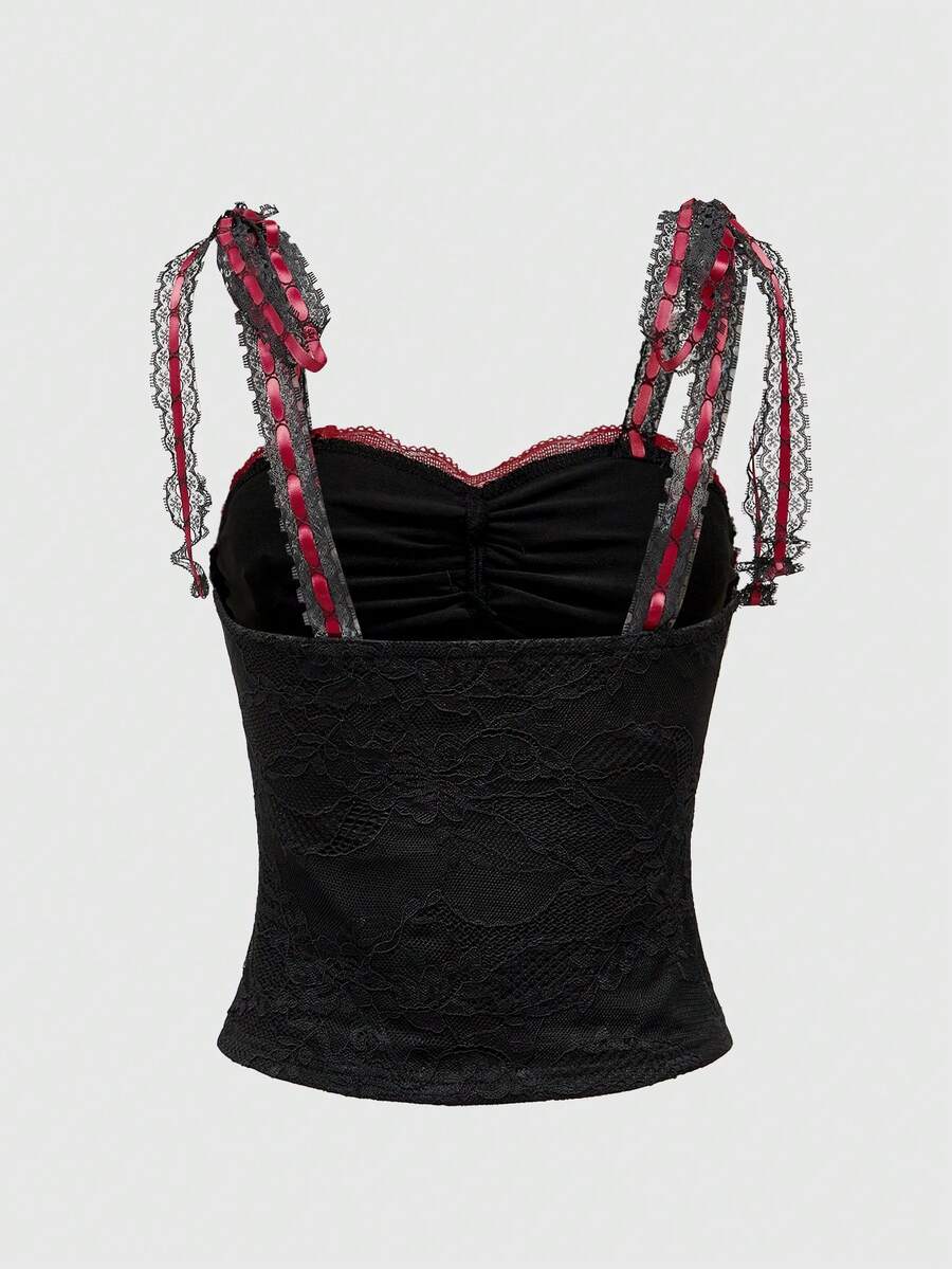 Goth Top de encaje con cordones, decorado con una cruz gótica y flor en el pecho, para mujer, ideal para Navidad