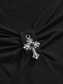 Goth Vestido mini asimétrico con decoración de cruz gótica, Halloween
