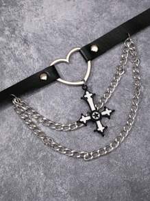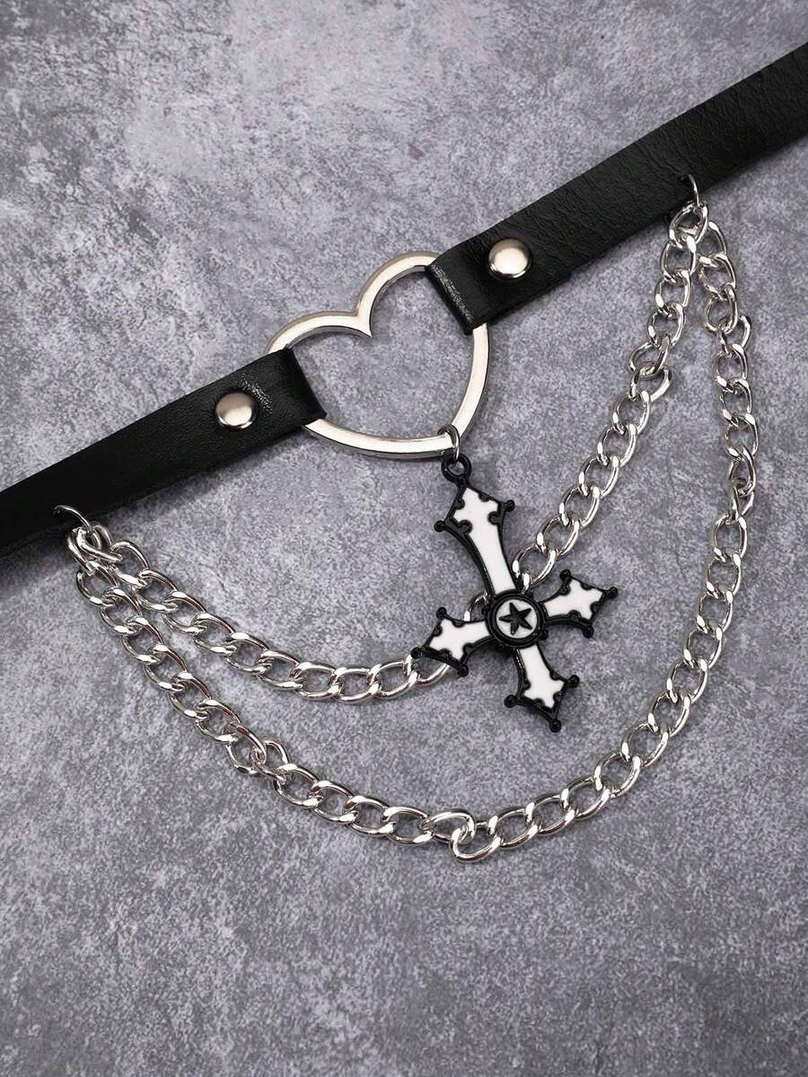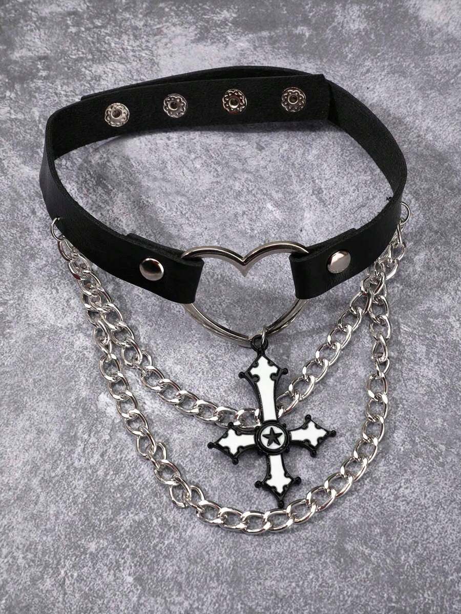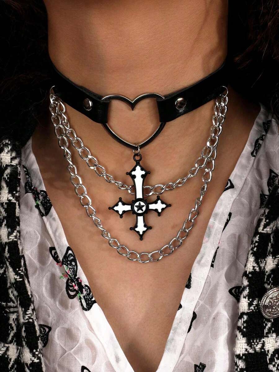 Goth Gótico Cruz Invertida Colgante Doble Collar De Gargantilla De Capa