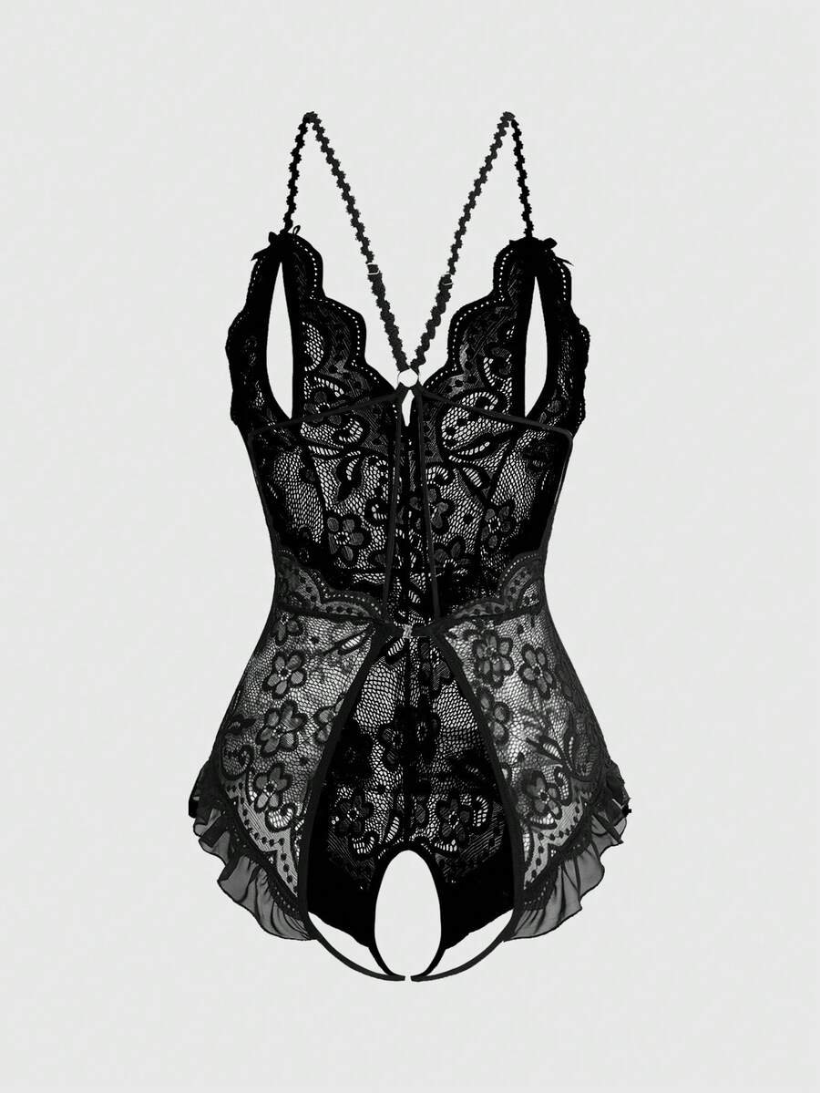 Goth Bodys sexy con encaje floral gótico