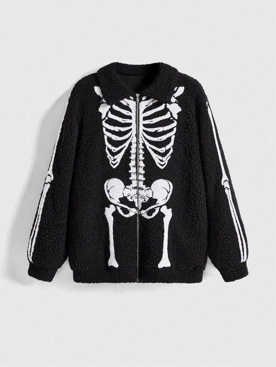 Goth Chaqueta de mujer de forro polar con estampado de esqueleto gótico para Halloween