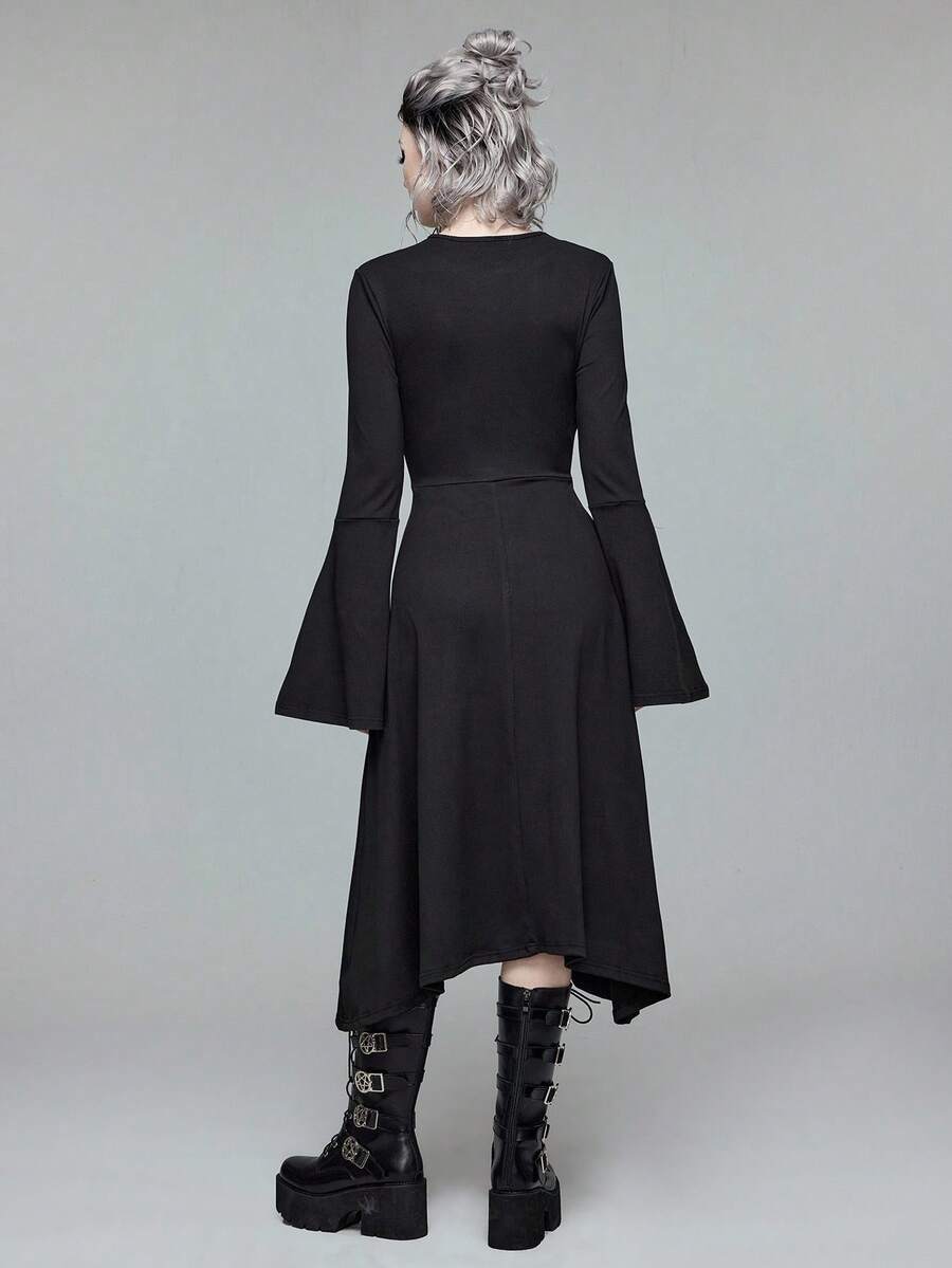 EDITION Vestido de manga acampanada de longitud media con diseño de pentagrama de estilo gótico para mujeres